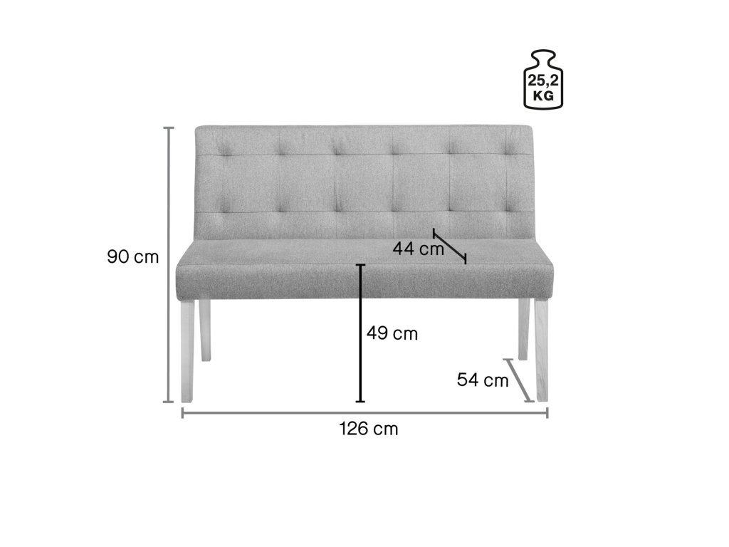 Dvojmiestna lavica z masívneho bukového rámu a látkového poťahu (100 % polyester). Sťahovacie operadlo. Vysoký komfort sedenia. Ľahko sa čistí. Vhodná na použitie v interiéri. Dodáva sa zmontovaná. Na spojenie viacerých prvkov si súčasne objednajte spojovacie kovanie. Zároveň si objednajte zodpovedajúci rohový prvok.Dodatočné parametre
