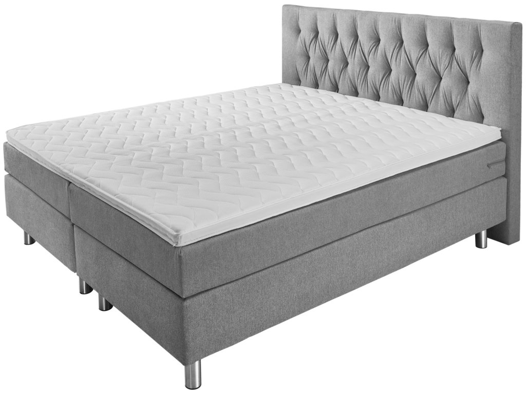 Box spring posteľ v praktickej kompletnej súprave. Box s pružinovým jadrom Bonell. Pružiny Bonell s hrúbkou 2,2 mm. Čalúnený rám z masívneho dreva. 7-zónový matrac s taštičkovým pružinovým jadrom s 540 pružinami na 2 m². Vrchný matrac zo studenej peny pre dobrý komfort spánku. Čelo postele s typickým prešívaním Chesterfield - výška 115 cm. Nehrdzavejúce kovové nožičky v striebornej farbe. Vstupná výška: 60 cm. Výška nožičiek 16 cm + box 22 cm + matrac 17 cm + topper 5 cm spolu: 60 cm. S poťahovou látkou na čalúnenie. K dispozícii ako jednolôžko alebo manželská posteľ. Dodávka vrátane spojovacích prvkov. Nožičky postele sa pri dodaní nachádzajú vo vnútri škatule.Dodatočné parametre