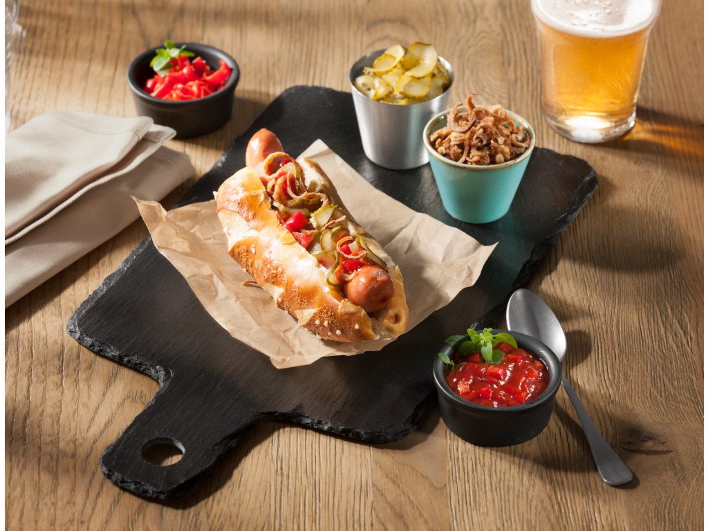 Obdĺžniková doska z prírodnej bridlice s rukoväťou. Gumové nožičky zabraňujú skĺznutiu na stole. Všetky rozmery sú merané bez rukoväte. Nie je možné umývať v umývačke riadu.Dodatočné parametre