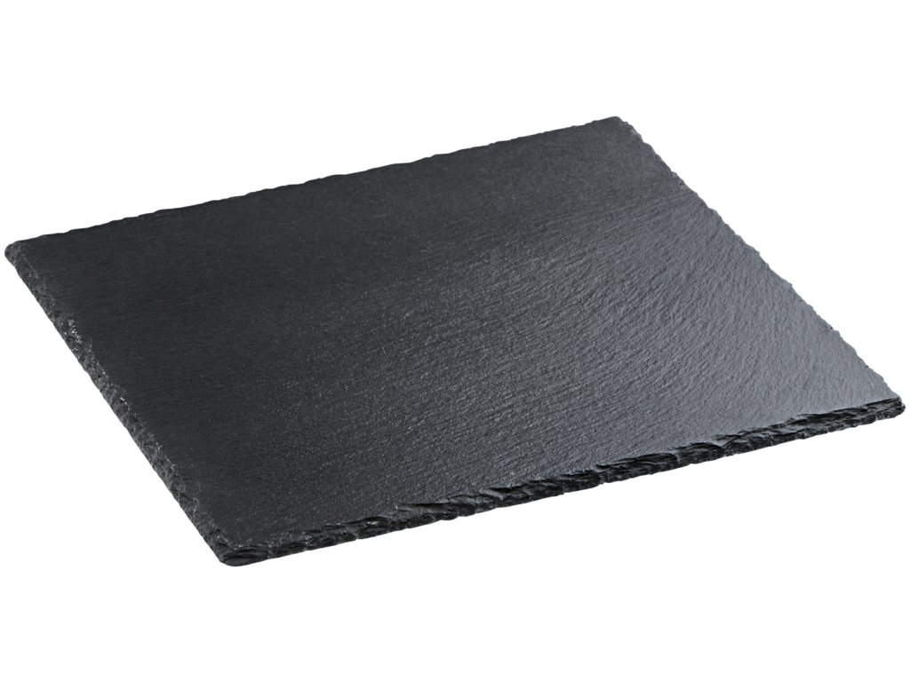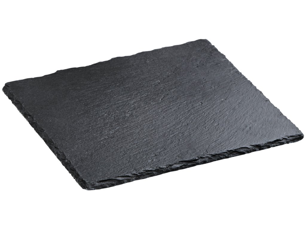 Štvorcová doska z prírodnej bridlice vhodná ako podklad pod riad na bufetoch alebo stoloch. Bezpečné uchytenie vďaka gumovým nožičkám. Nie je vhodná do umývačky riadu.Dodatočné parametre