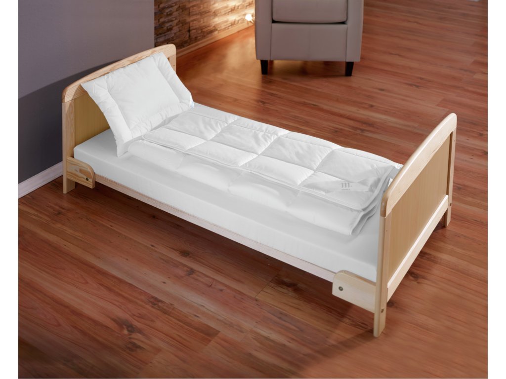 Výplň: 100 % polyester (supersilikonizované duté vlákno). Poťah: 65 % polyester, 35 % bavlna. Prikrývka s vysokou funkčnosťou a širokým spektrom použitia. Supersilikonizované duté polyesterové vlákno. Tkanina zo zmesi bavlny šetrnej k pokožke. Normy kvality pre práčovne. Žiadne kĺzanie výplne z vlákien vďaka prešívaniu. Pre nemocnice a všetky zariadenia, kde je dôležité dodržiavanie hygienických štandardov. Prešla skúškou žíhania cigariet v súlade s normou EN ISO 12952-1. Vlákno potiahnuté silikónom chráni prikrývku pred zlepením. Pri použití chlóru sa silikón rozpustí a vlákna v prikrývke sa zlepia.Dodatočné parametre