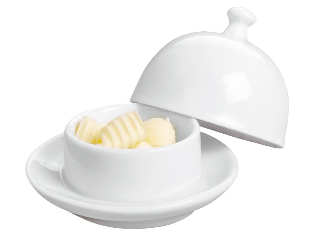 Dóza na maslo s vrchnákom. Vnútro: Ø: 5.3 cm. Materiál: porcelán. Vhodná do umývačky riadu!Dodatočné parametre