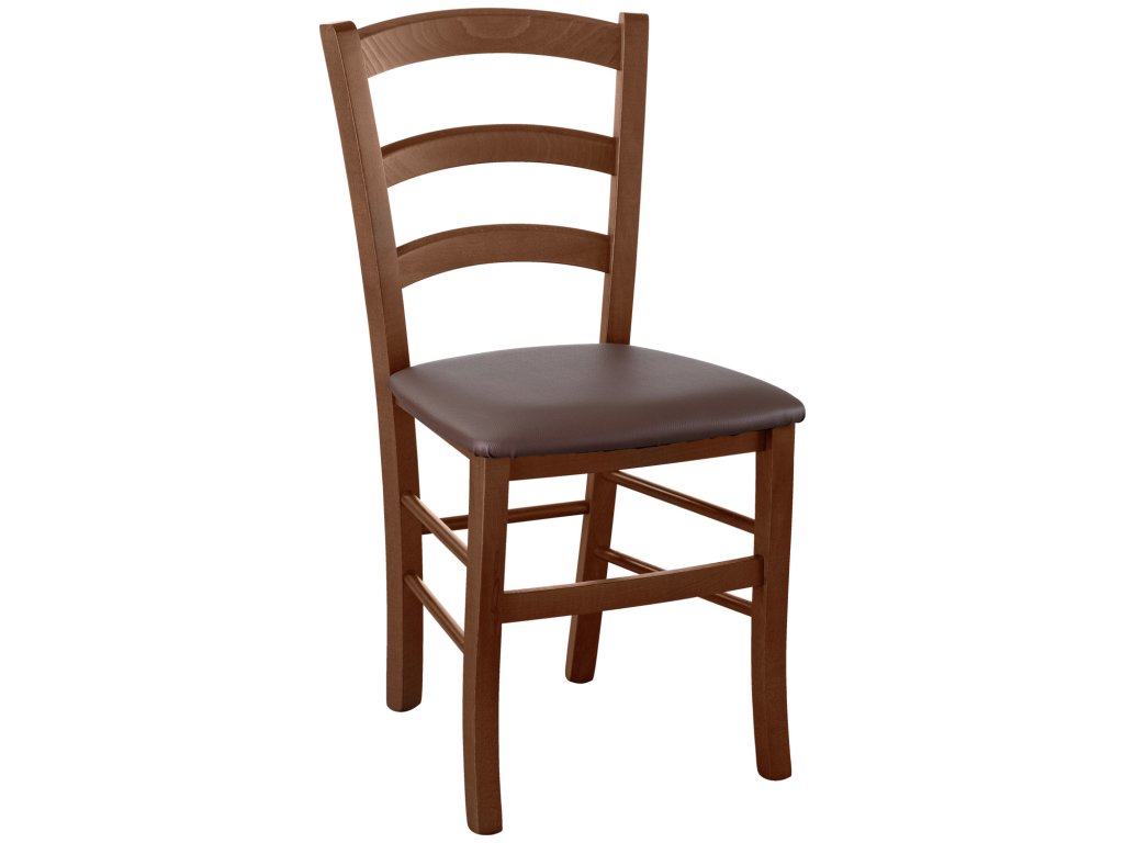 Klasická stolička z masívneho lakovaného bukového dreva. Sedadlo s poťahom z imitácie kože. Sedadlo: 43x42 cm. Vhodné na použitie v interiéri. Dodáva sa zmontovaná.Dodatočné parametre
