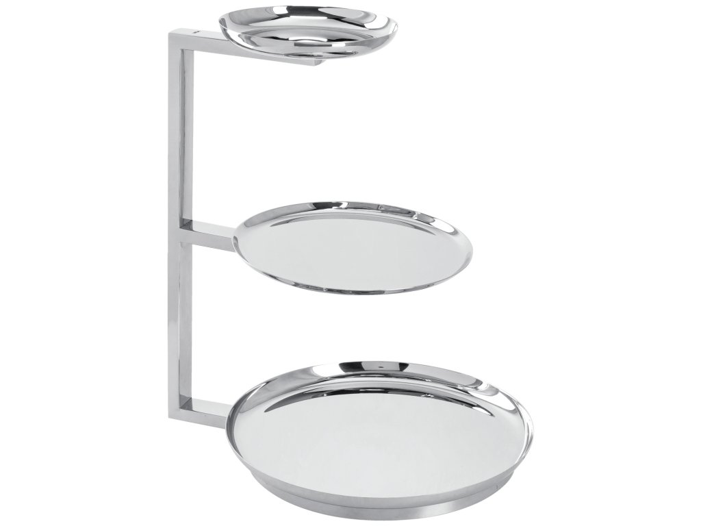 Etažér s tromi doskami s rozmermi Ø 16 cm, 21 cm a 27 cm z nehrdzavejúcej chrómniklovej ocele 18/10. S protišmykovými gumovými nožičkami pre bezpečné postavenie. Vysokokvalitná povrchová úprava. Možno umývať v umývačke riadu.Dodatočné parametre