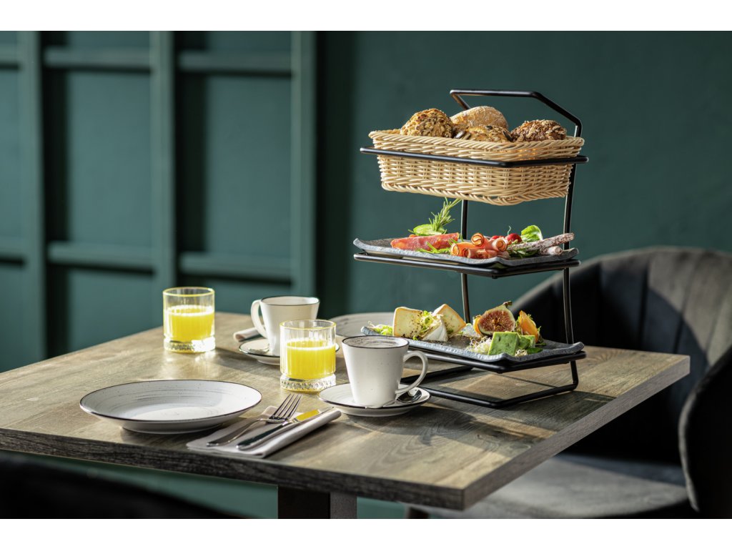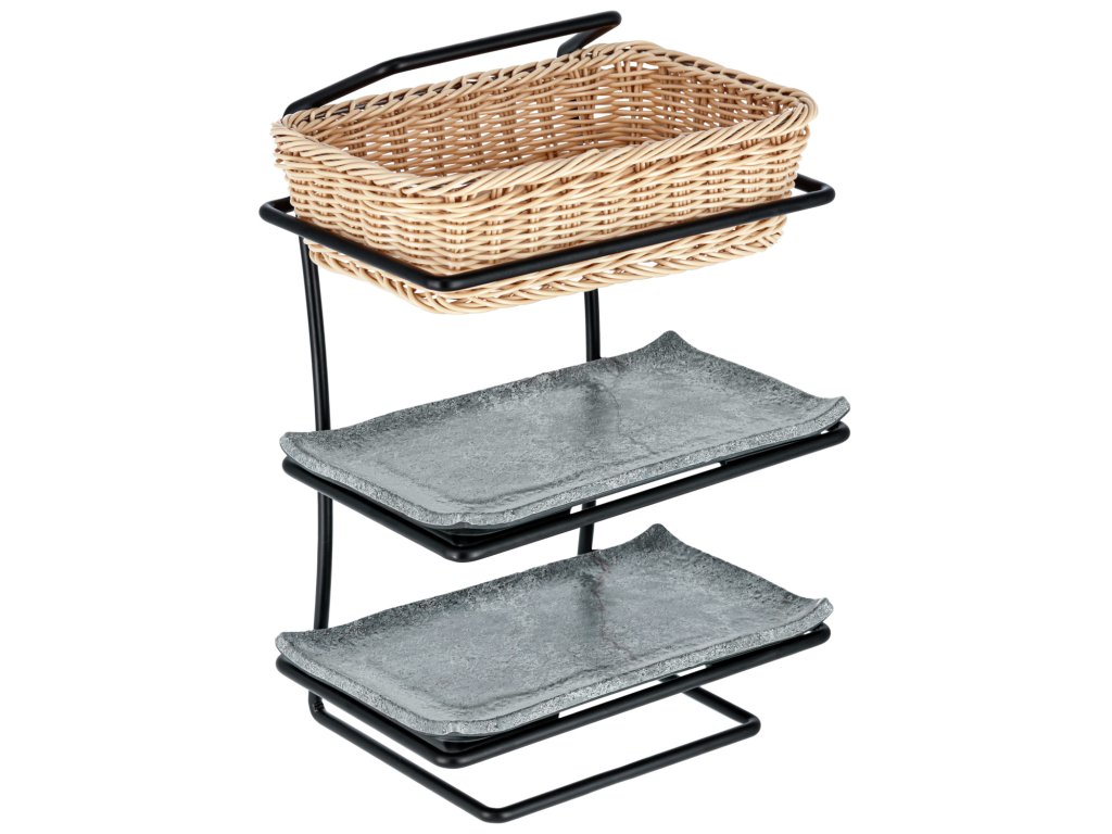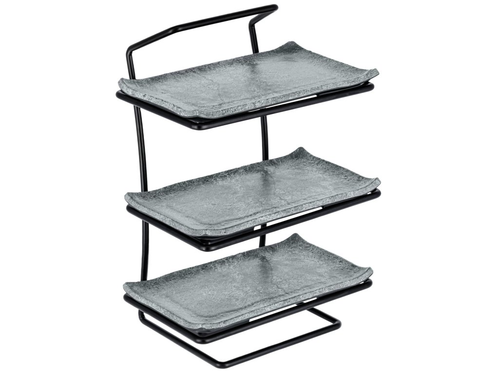 3-stupňový etažér z práškovanej ocele. Pre podnosy a GN nádoby do hĺbky 6,5 cm, veľkosť GN 1/4. Nie je vhodný do umývačky riadu.Dodatočné parametre