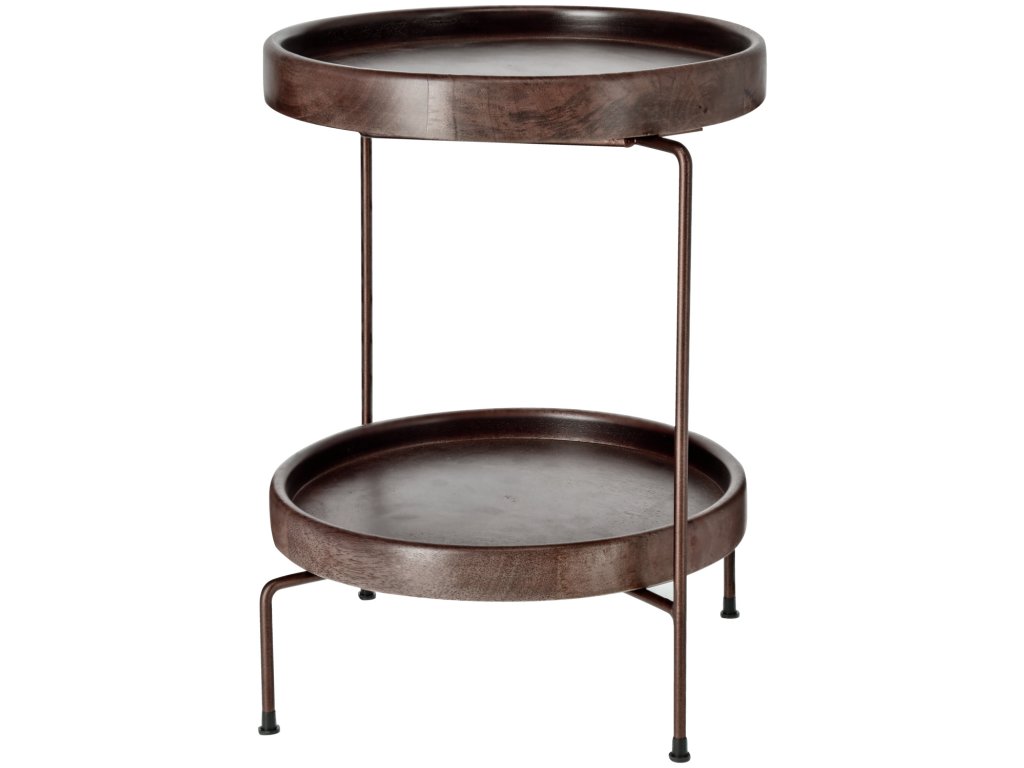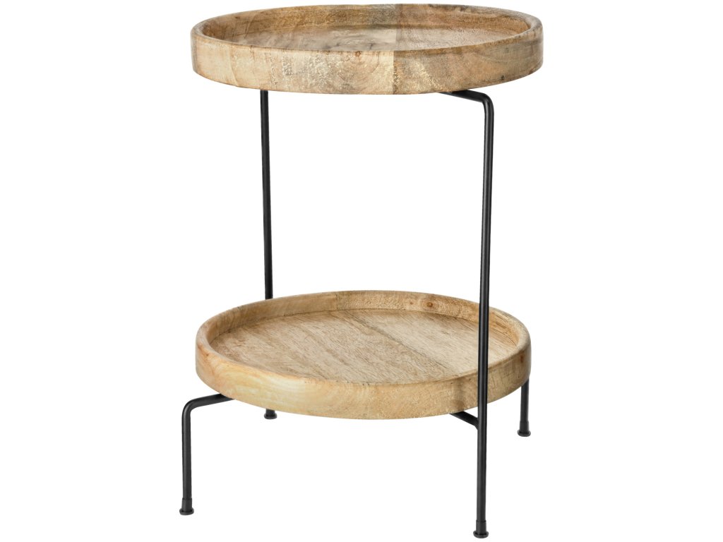 Dvojposchodový etažér z mangového dreva. Vhodný na styk s potravinami. Nie je možné umývať v umývačke riadu.