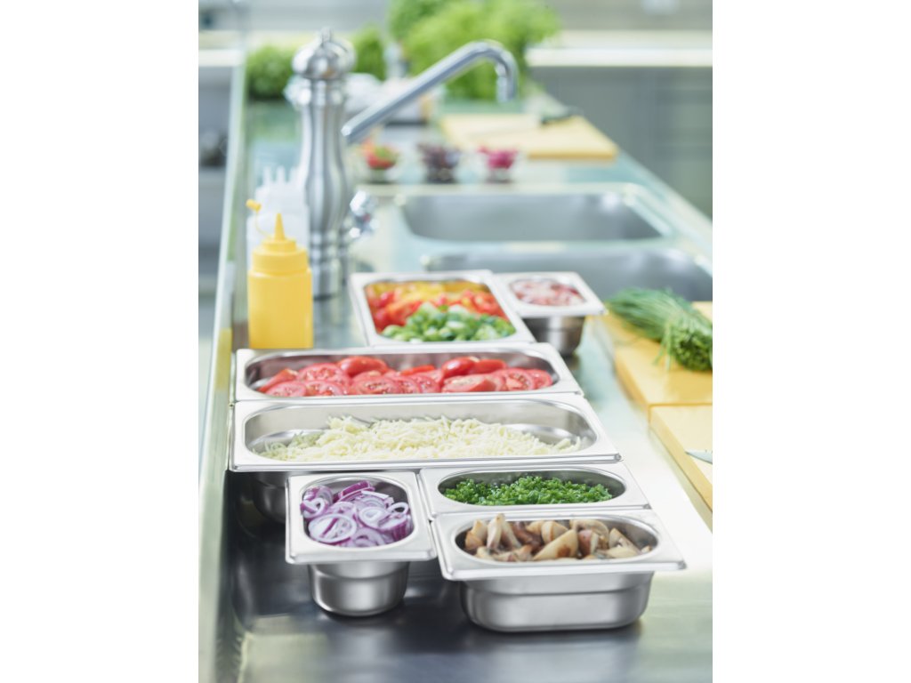 GN nádoba 1/3 vyrobená z chrómniklovej nehrdzavejúcej ocele 18/10, odolná proti korózii, bez padacieho držadla. Hrúbka materiálu: 0,8 mm. So stohovacími okami: ľahké rozoberanie stohovaných nádob Gastronorm. Vhodné do umývačky riadu. Odporúčame z času na čas vyčistiť octom alebo citrónovým čistiacim prostriedkom, aby sa zachoval lesk nádob.Dodatočné parametre