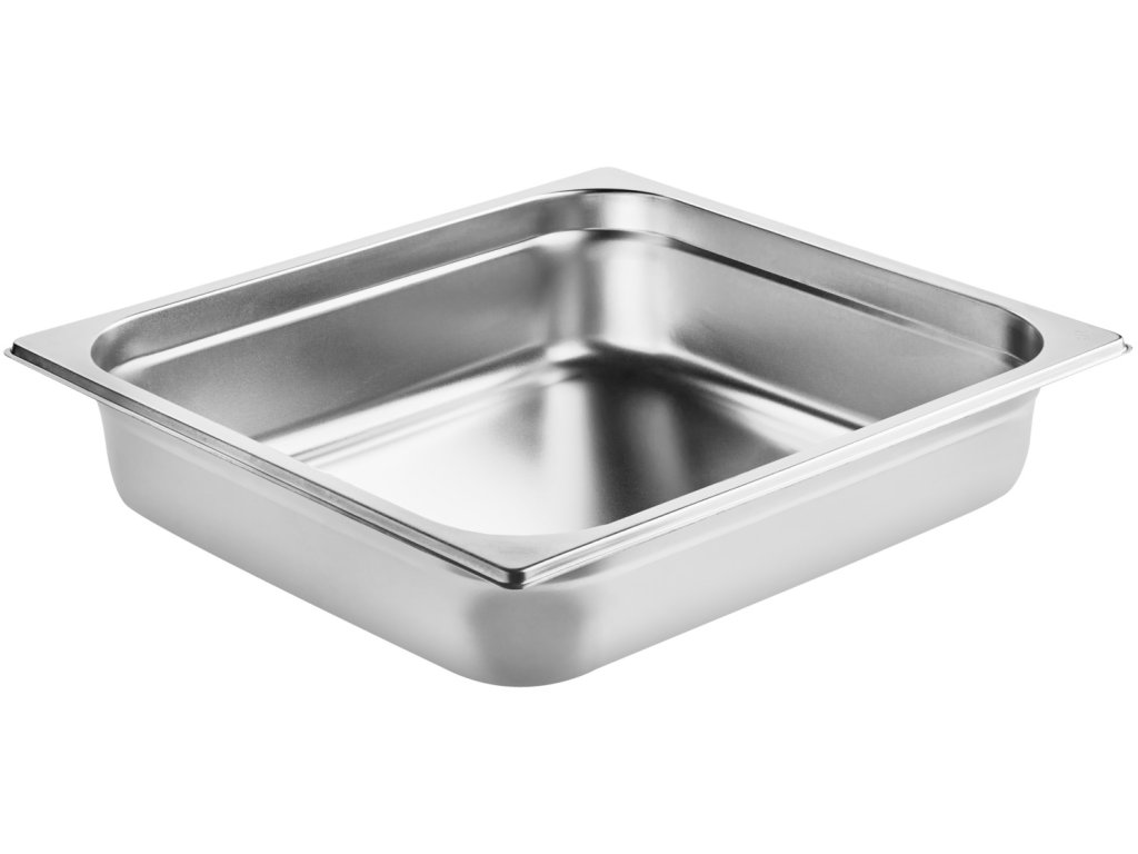GN nádoba 2/3 z chrómniklovej nehrdzavejúcej ocele 18/10, odolná proti korózii, bez padacieho držadla. Hrúbka materiálu: 0,8 mm. So stohovacími okami: ľahké rozoberanie stohovaných nádob Gastronorm. Vhodné do umývačky riadu. Odporúčame z času na čas vyčistiť octom alebo citrónovým čistiacim prostriedkom, aby sa zachoval lesk nádob.Dodatočné parametre