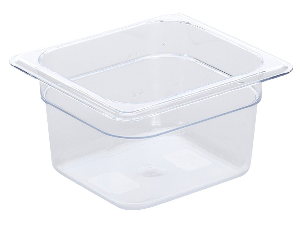 GN nádoby z priehľadného polykarbonátu. S praktickým stohovacím vačkom. Odolné voči teplotám od -40 °C do +99 °C. Obsah možno optimálne kontrolovať vďaka označeniam plnenia na vonkajšej strane. Objednajte si zároveň zodpovedajúce veka (vrátane výklenku na rukoväť) a odtokové mriežky zo skupiny Bena. Vhodné pre styk s potravinami, umývačku riadu a mikrovlnnú rúru.Dodatočné parametre