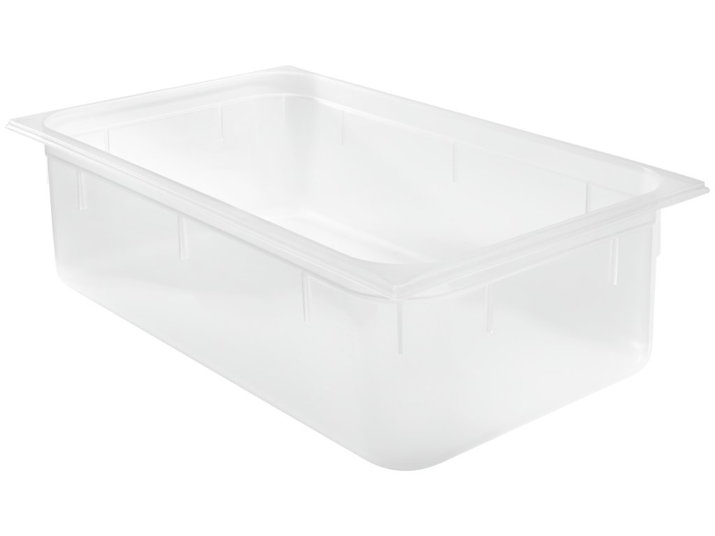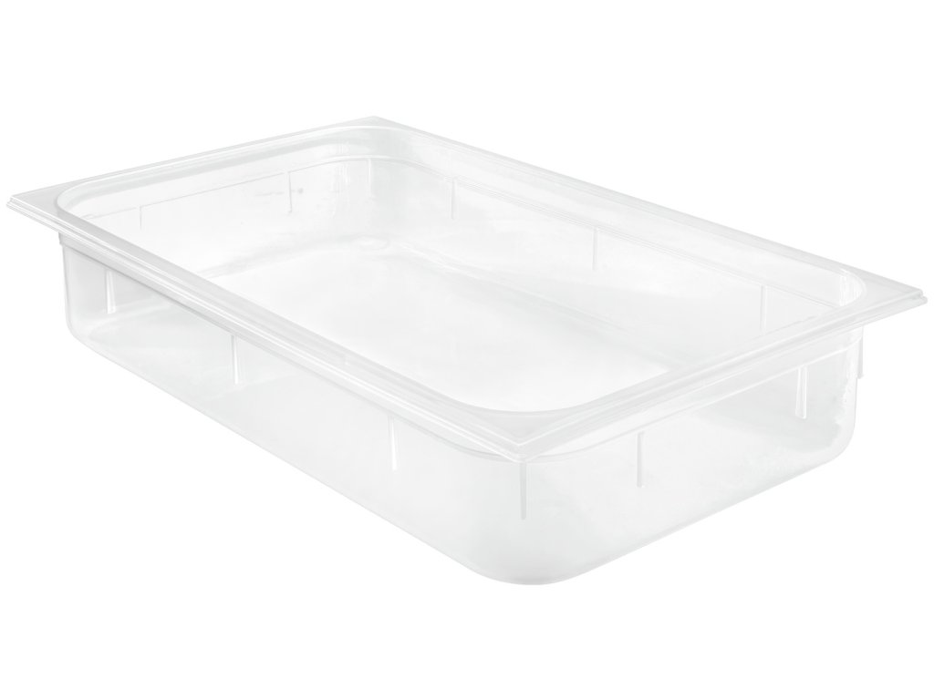 Obdĺžniková plastová nádoba GN 1/1 z polypropylénu, ktorý je vhodný na použitie v potravinárstve. Odolná voči nárazom a veľmi robustná. Priehľadná, vďaka čomu je obsah zvonku ľahko rozpoznateľný. Univerzálne použitie pri teplotách od -40 °C do +95 °C. Označenie náplne na vonkajšej strane. Plniaci objem 9,8 litra. Dodáva sa bez veka a odkvapkávacej misky. Bez bisfenolu A. Vhodné do umývačky riadu.Dodatočné parametre