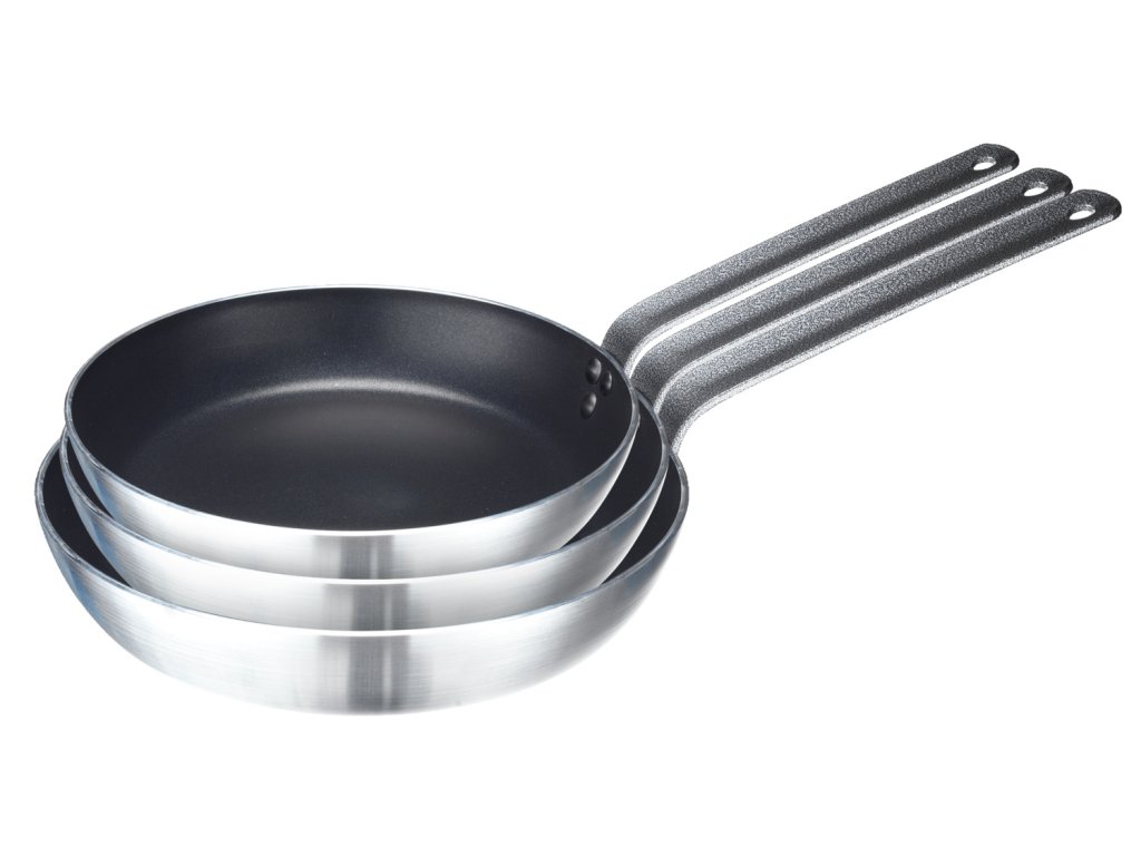 Vysokokvalitná panvica z hliníka, saténový povrch na vonkajšej strane. S dvojvrstvovým nepriľnavým povrchom. Hrúbka steny cca 4 mm (hrúbka dna cca 3,7 mm). Profesionálne nitovaná železná rukoväť. Vhodná na všetky typy varných dosiek - okrem indukcie. Hrúbka materiálu 0,8-1,0 mm, dlhá životnosť. Odolnosť teplotám do 240 °C. Panvice s povrchovou úpravou nie sú vhodné do umývačky riadu.Dodatočné parametre