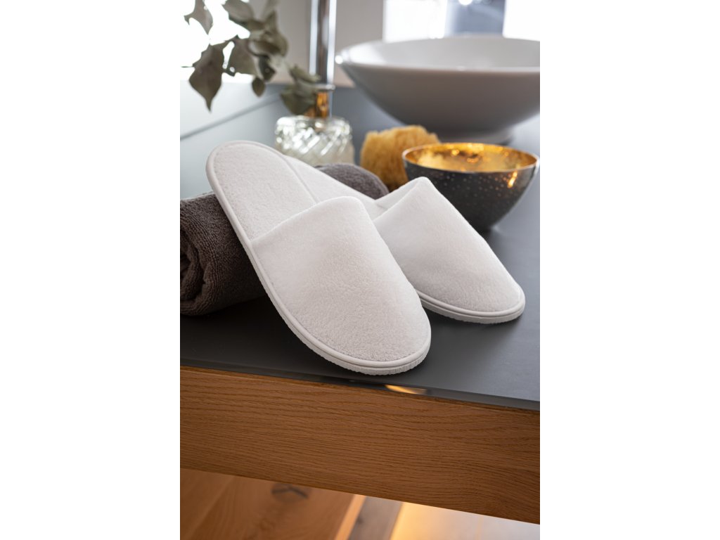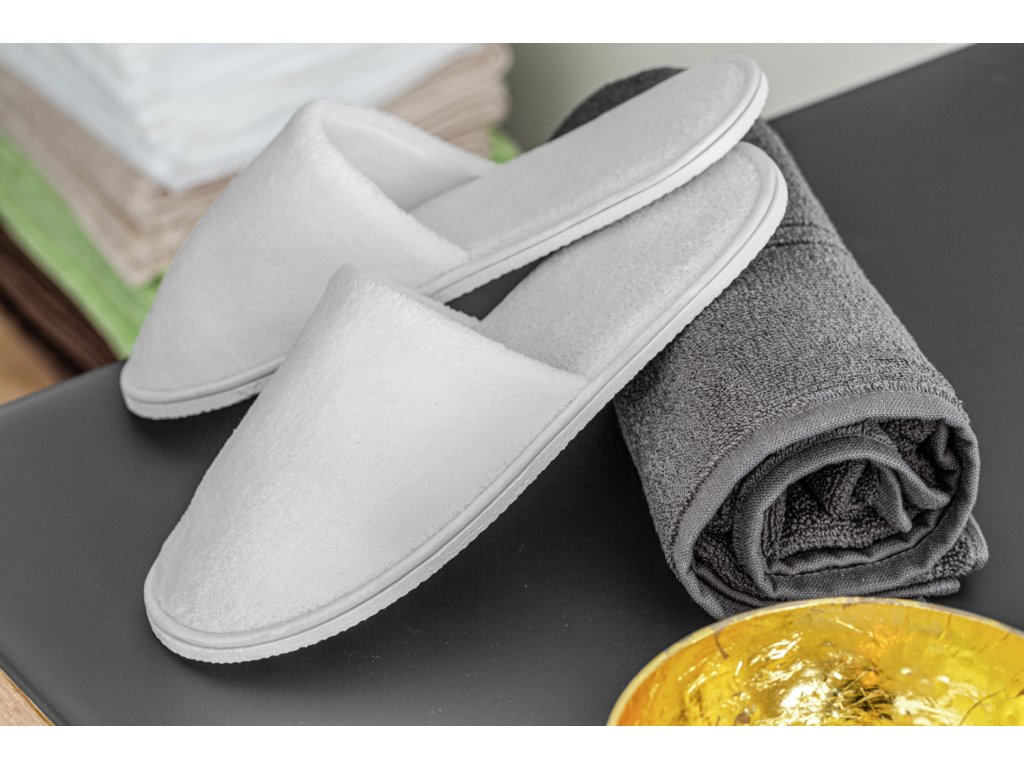 Zvršok: 100 % polyester. Podrážka: 100 % polyetylén ** (EPE). Pohodlné froté papuče unisex v uzavretom dizajne s 3 mm hrubou penovou stielkou a 7 mm vysokou protišmykovou podrážkou. Balené jednotlivo po pároch v papierovom obale šetrnom k životnému prostrediu. Dĺžka papuče: 29 cm. Vhodné pre veľkosti obuvi od 35 do 46.Dodatočné parametre