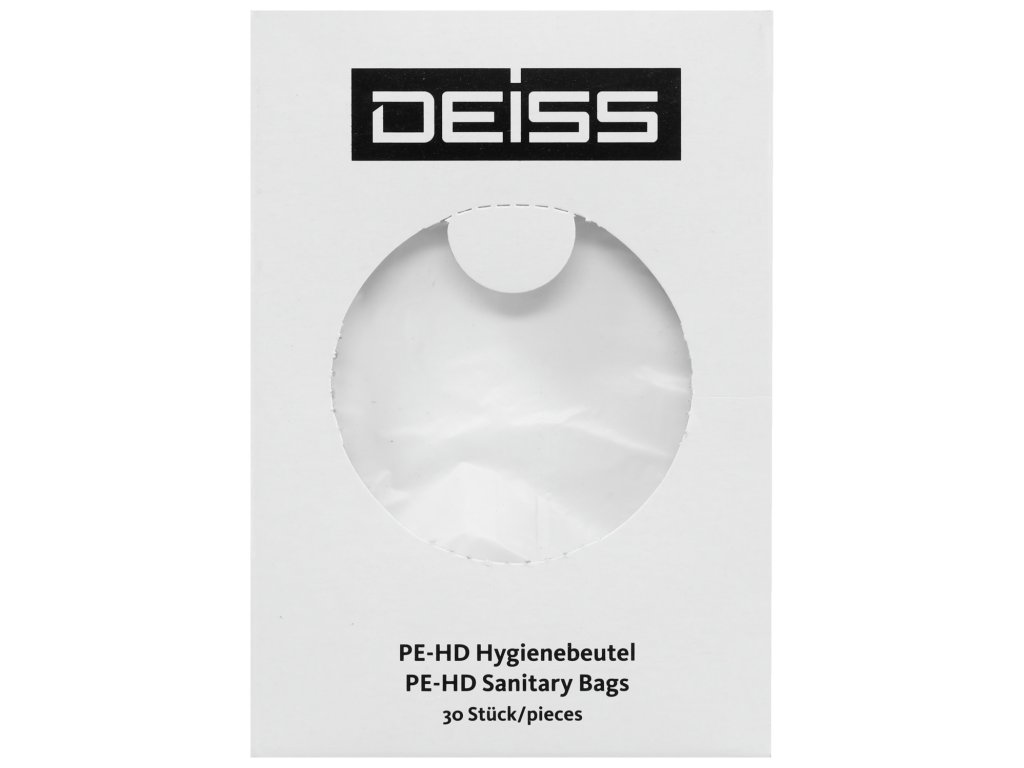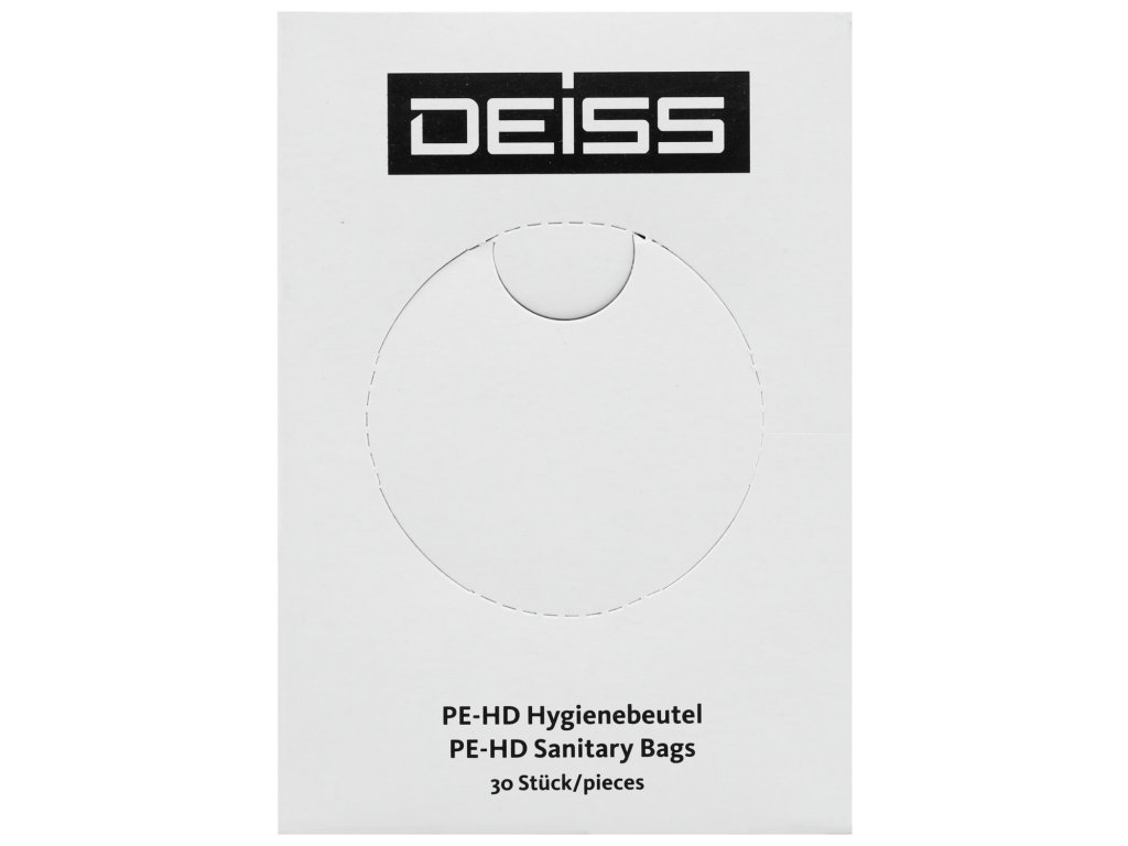 Hygienické vrecká z pevného plastu (polyetylén vysokej hustoty). Či už na verejných toaletách alebo vo vašej firme - hygienické vrecká sú nevyhnutné na likvidáciu dámskych hygienických výrobkov. Odolné proti roztrhnutiu a robustné. Balené v dávkovacej krabici s jednofarebnou potlačou. Hygienické vrecko je bez potlače. Okrúhly otvor na vyberanie, s odtrhávacou záložkou.Dodatočné parametre