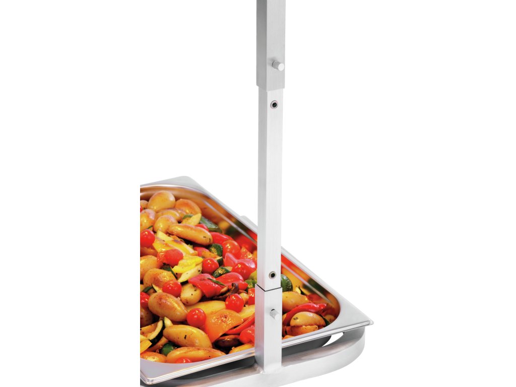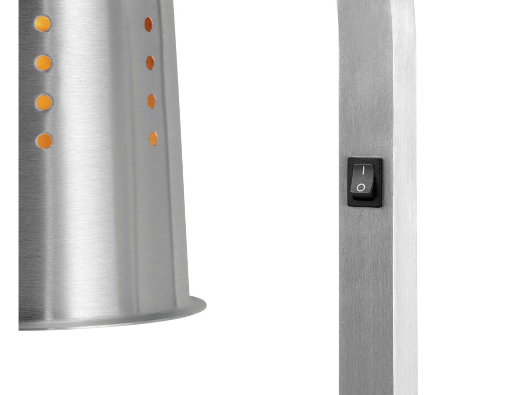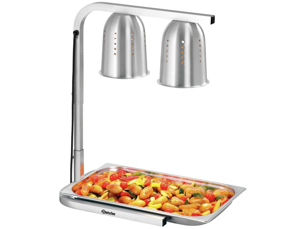 Ohrievací mostík s dvoma 250-wattovými infračervenými lampami na udržiavanie teplého jedla. Výškovo nastaviteľný hliníkový rám. Teplota nastaviteľná prostredníctvom výšky infračervených lámp, maximálne 70 °C. Spotrebič sa dodáva v demontovanom stave, jednoduchá montáž; návod je súčasťou dodávky. Vrátane jednej nádoby 1/1 GN, hlbokej 65 mm, vyrobenej z nehrdzavejúcej ocele 18/10 s chrómniklovým povrchom. Možno umývať v umývačke riadu. Dvojročná záruka. Zároveň si objednajte náhradnú infračervenú lampu. 0,55 kW/230 V; hmotnosť: 2,6 kg.Dodatočné parametre