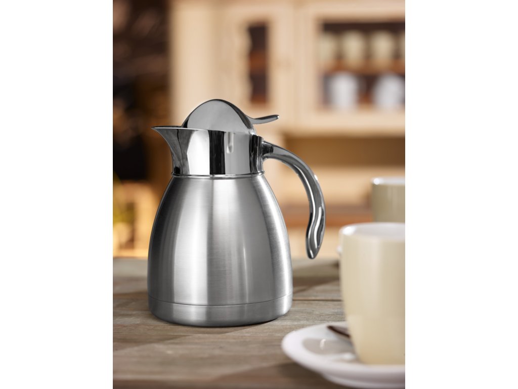 Izolačná kanvica v klasickom dizajne z ocele 18/10. S dvojstennou nerezovou násadkou. Jednoduchá údržba. Robustná a dlhotrvácna. Nie je vhodná do umývačky riadu.Dodatočné parametre