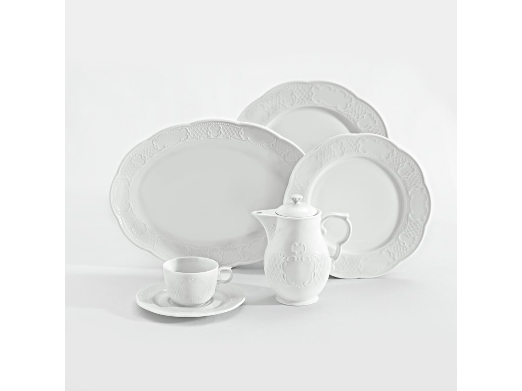 Biela porcelánová kanvica s vrchnákom s filigránovým reliéfom. Vhodná do umývačky riadu a mikrovlnnej rúry.Dodatočné parametre