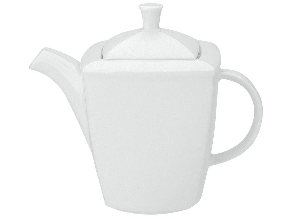 Biela porcelánová kanvica na kávu s vrchnákom. Štvorcový tvar. Jednoduchý dizajn. Vhodná do umývačky riadu a mikrovlnnej rúry.Dodatočné parametre