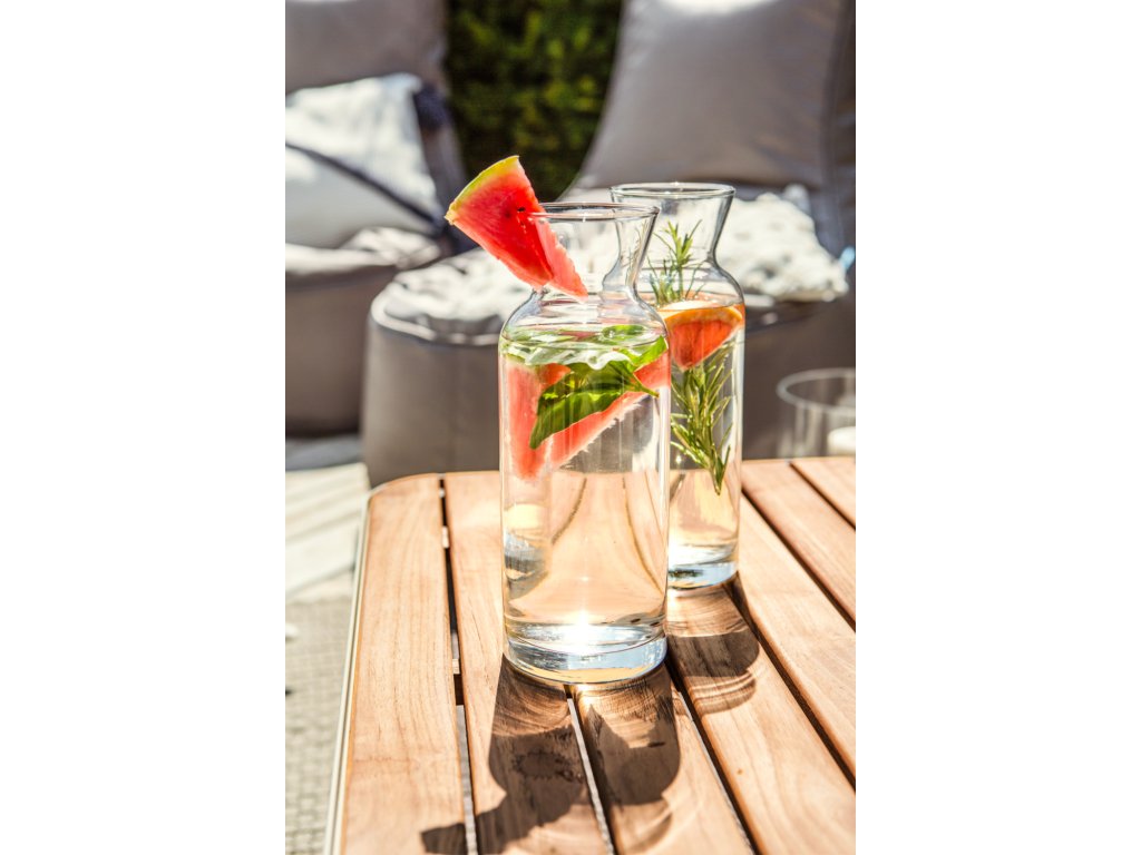 Karafa zo skla v modernom tvare s ryskou. Vhodná do umývačky riadu.Dodatočné parametre