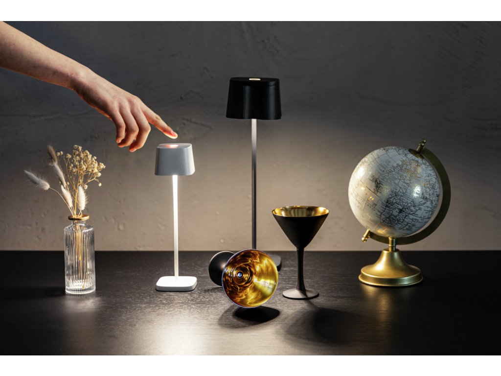 LED stolová lampa s nabíjacou stanicou. Čas nabíjania cca 6 hodín, výdrž batérie až 20 h. Na vnútorné aj vonkajšie použitie.Dodatočné parametre