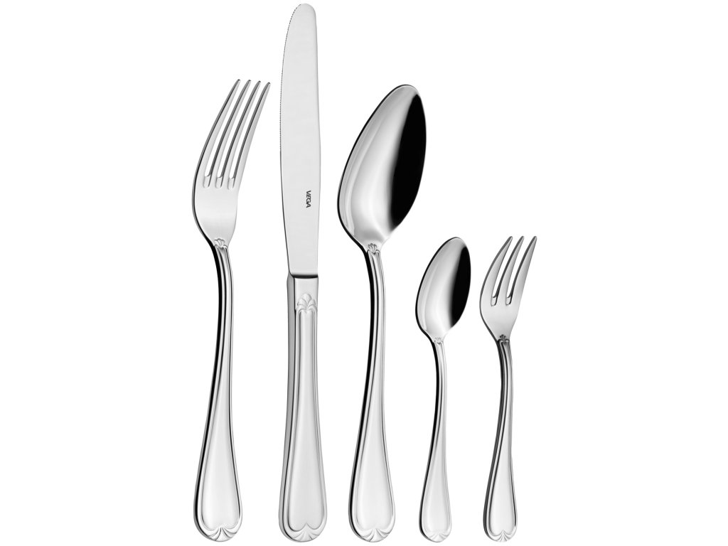 Chrómovaná oceľ 13/0, odolná voči korózii. Menu nôž s klasickým reliéfom na rukoväti. Vysoko leštený. Hrúbka materiálu gastronomickej kvality 3,5 mm (merané v najhrubšom bode menu vidličky). Vhodný do umývačky riadu.Dodatočné parametre