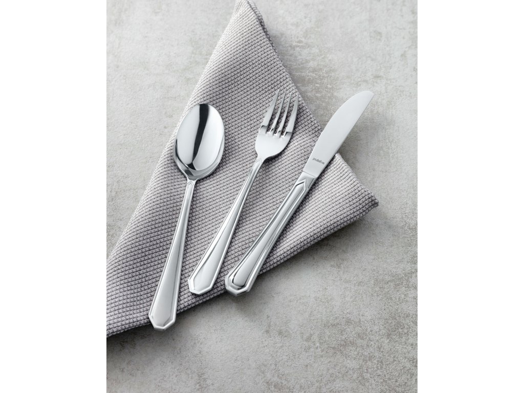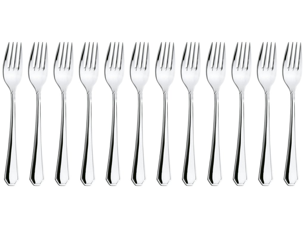 Nerezová oceľ 18/0. Klasická jedálenská vidlička. Vysoko leštená. Hrúbka materiálu na stolovanie 2,2 mm (merané v najhrubšom bode menu vidličky). Vhodná do umývačky riadu.Dodatočné parametre