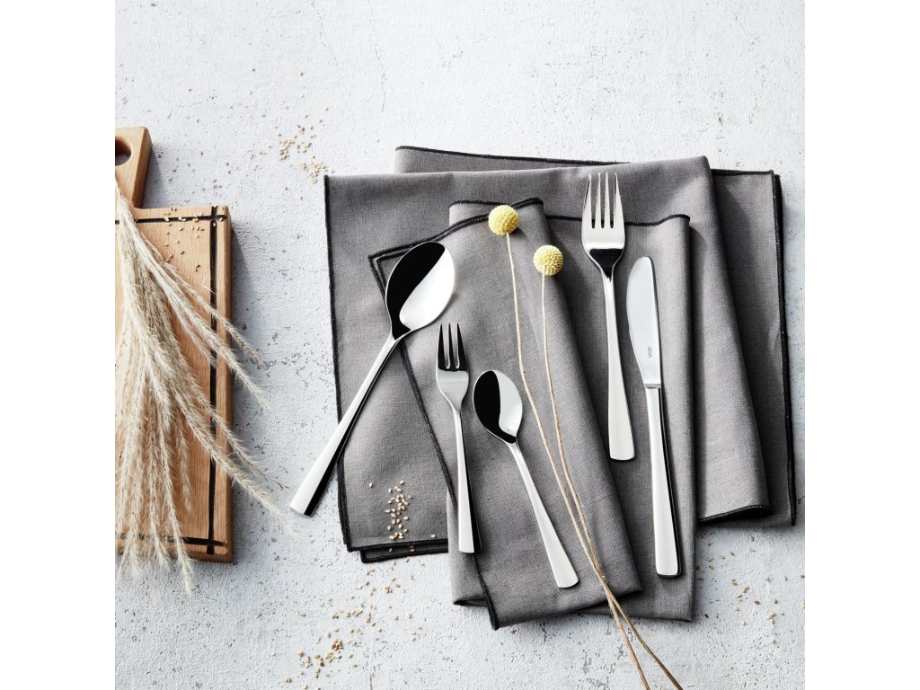 Chróm-niklová nehrdzavejúca oceľ 18/10, odolná proti korózii. Vidlička na múčnik v jednoduchom, neutrálnom dizajne. Vysoko leštená. Hrúbka materiálu gastronomickej kvality 3 mm (merané v najhrubšom bode vidličky). Vhodná do umývačky riadu.Dodatočné parametre