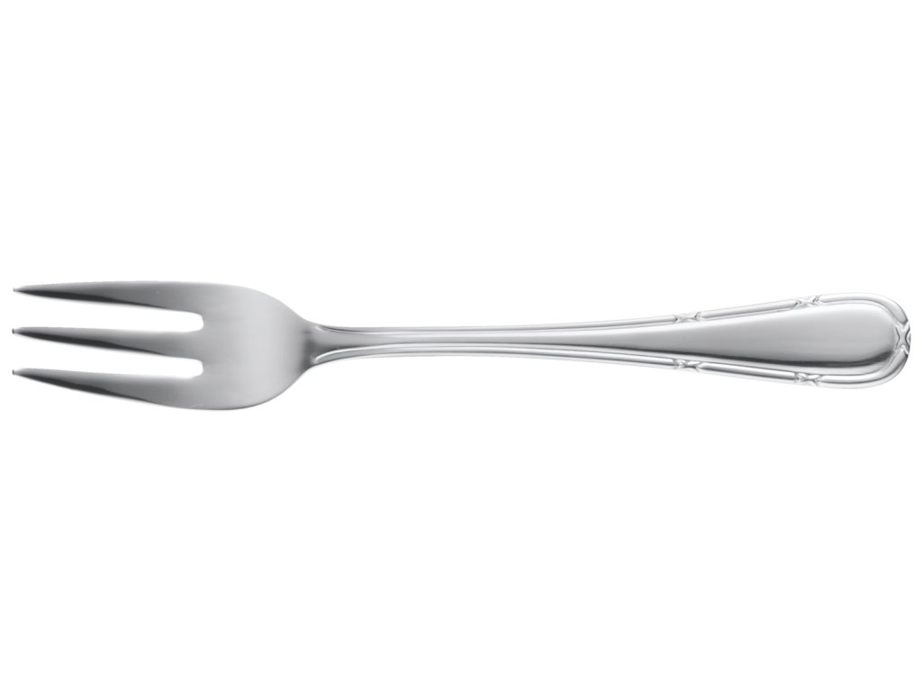 Nerezová oceľ 18/0, odolná proti korózii. Vidlička na múčnik s reliéfom na rukoväti. Vysoko leštená. Hrúbka materiálu v gastronomickej kvalite 2,8 mm (merané v najhrubšom bode vidličky). Vhodná do umývačky riadu.Dodatočné parametre