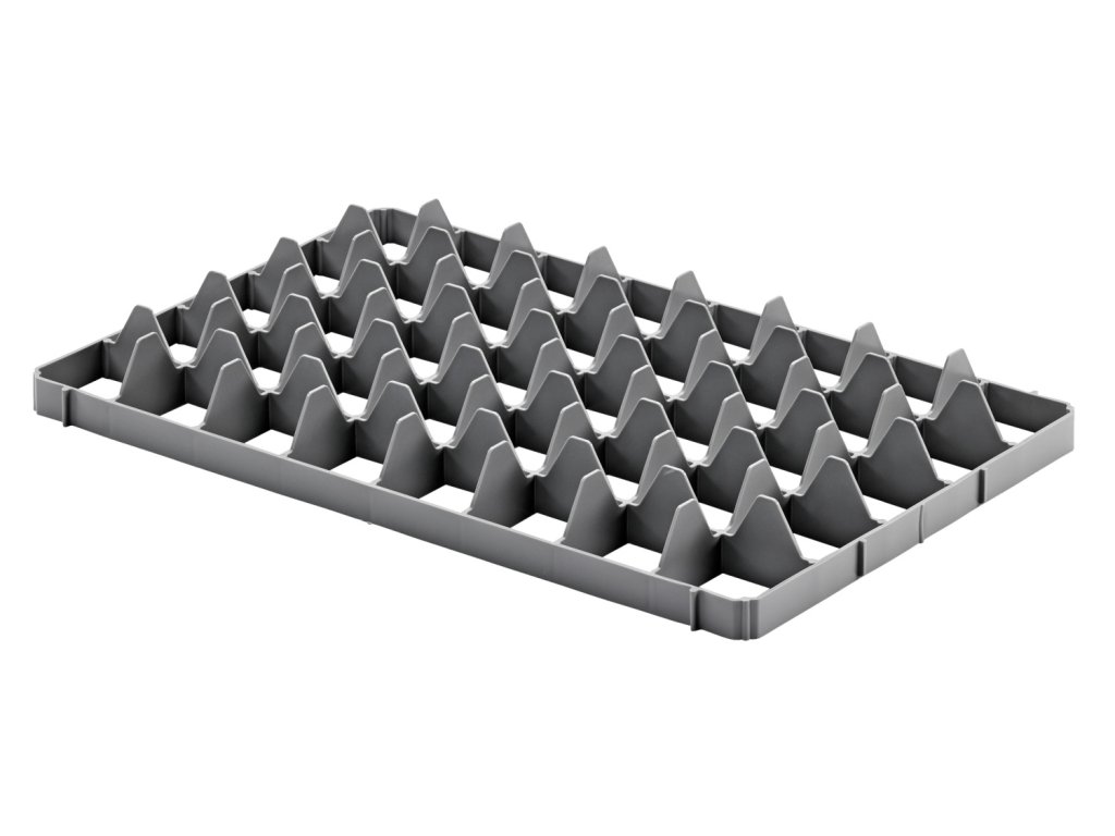 Fachwerkeinsatz für Transport- und Spülkastensysteme aus Polyethylen. Mit 40 Fächern. Ideal zum Transportieren von Gläsern mit maximal 6,7 cm, je nach Größe auch mit Henkel. Dieses Bodenteil lässt sich einfach in den Kasten einfügen und entnehmen. Zum noch besseren Fixieren von Gläsern das passende Fachwerkeinsatz Oberteil gleich mitbestellen. Spülmaschinenfest.Dodatočné parametre