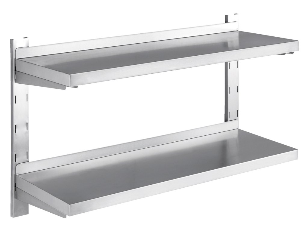 Vyrobená z nehrdzavejúcej ocele, odolná proti korózii. Na montáž na stenu. Dve nastaviteľné lišty a dve police s 3 cm výškou. Police možno zavesiť v piatich rôznych výškach. Maximálna vzdialenosť medzi dvoma policami je 32 cm. Rozmery dodaných koľajničiek DxŠ 55x5,5 cm.Dodatočné parametre