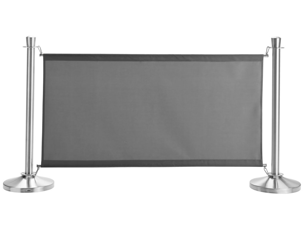 Zástena na vonkajšie použitie vyrobená zo 100 % polyesteru. S tunelmi na inštaláciu tyčí a upevnenie na stĺpik Noho. Odolná voči poveternostným vplyvom a UV žiareniu. Vhodná na vonkajšie použitie. Objednajte si súčasne zodpovedajúce tyče a stĺpiky Noho.Dodatočné parametre