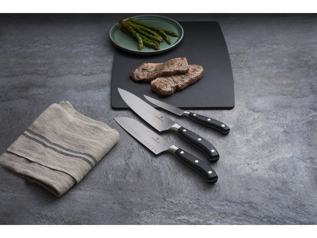 GRAND MAÎTRE SPOĽAHLIVÉ REMESELNÉ SPRACOVANIE VEDIE K RADOSTI - Kované z jedného kusu a rovnomerne kalené - Dokonalé vyváženie pre pohodlie pri práci - Nadčasový, odolný dizajn Rovnováha a vyváženosť: to je krédo kolekcie Grand Maître, ktorú oceňujú profesionálni aj amatérski kuchári. Každý model tejto obľúbenej série je vykovaný z jedného kusu a rovnomerne kalený. Tento spôsob výroby zaručuje plynulý prechod z rukoväte na čepeľ a väčšiu kontrolu a presnosť pri každom reze. Ergonomicky tvarovaná rukoväť navyše poskytuje optimálny komfort počas dlhého obdobia. Materiál rukoväte: Polyoxymetylén je robustný, tvrdý a zachováva si svoj tvar aj pri vysokých teplotách. Je vysoko odolný proti oderu, dá sa sterilizovať a je vhodný na teploty do 130 °C.Dodatočné parametre