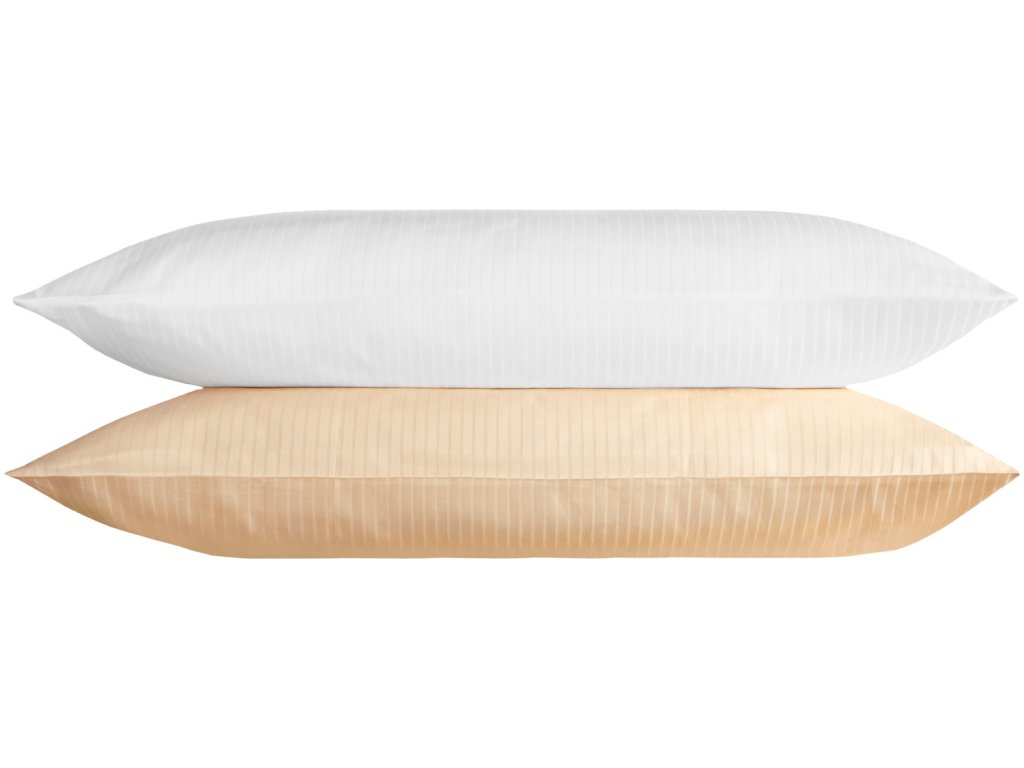 100 % bavlna. Hmotnosť približne 140 g/m². Elegantná posteľná súprava so vzorom damaškových pruhov (šírka 8 mm). Zachováva si uvedený rozmer po troch vypraniach. S hotelovým zapínaním a vrúbkovanými záševkami (od rozmeru 60x80 cm s vrúbkovanými záševkami). Mercerované. Hustota vlákien (TC): 180 nití na palec Tkanie: DamašekDodatočné parametre