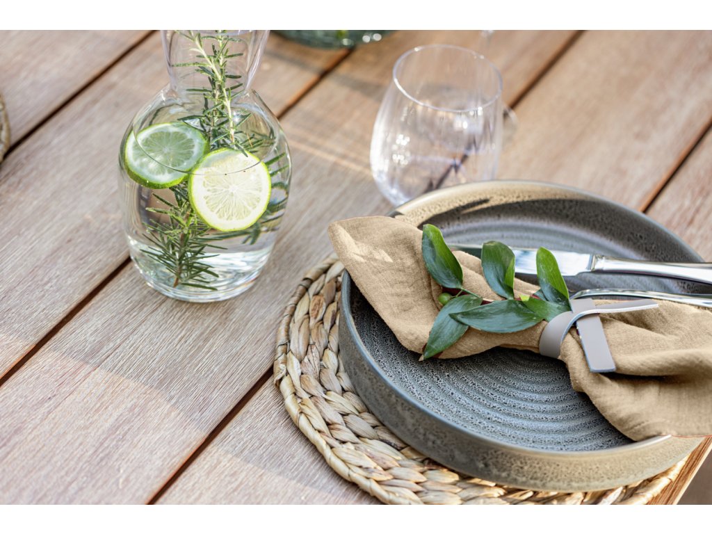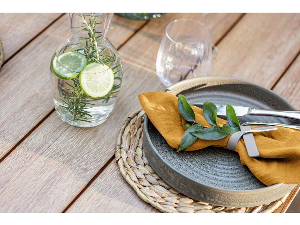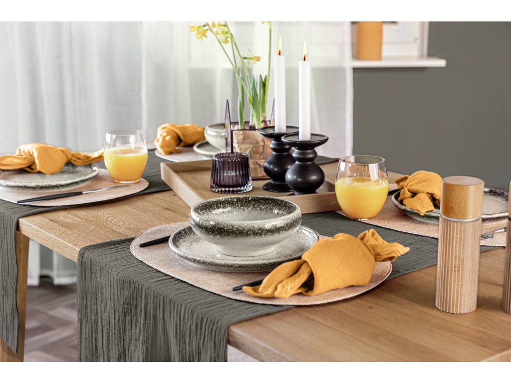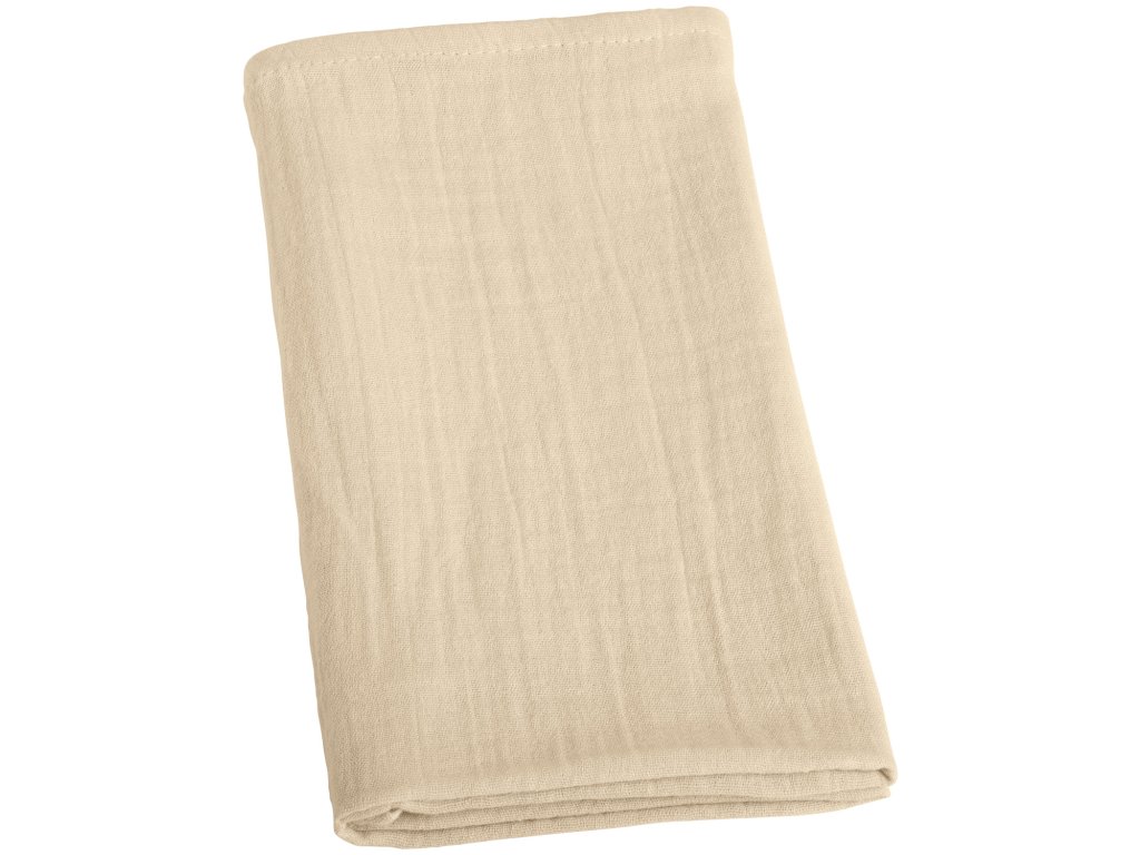 100 % bavlna. Hmotnosť približne 125 g/m². Moderný obrúsok z mäkkého mušelínu v balení po šiestich kusoch. Bavlnená tkanina sa vyznačuje predovšetkým mimoriadnou trvanlivosťou a odolnosťou. Obrúsok je navyše nežehlivý a ľahko sa udržiava. Zvráskavený vzhľad sa objaví už po prvom praní.Dodatočné parametre