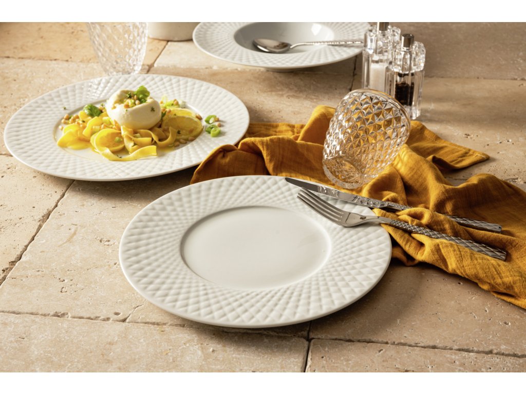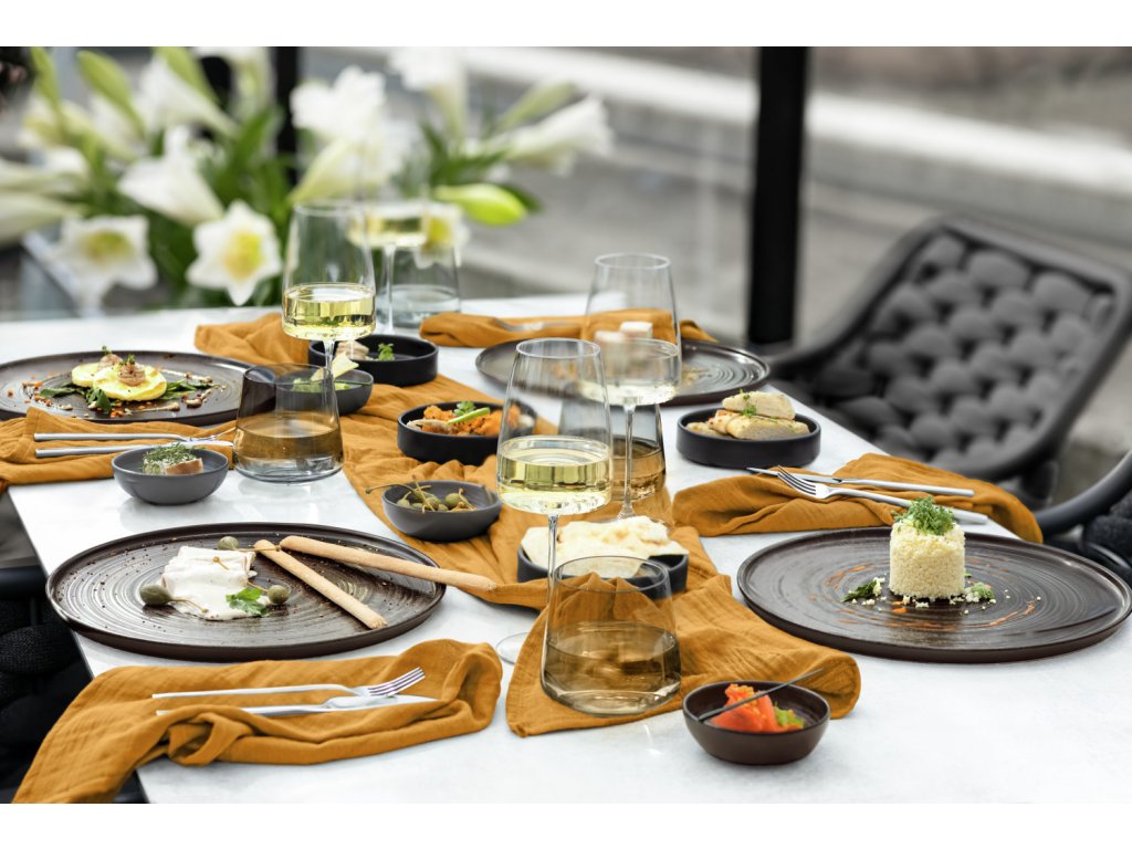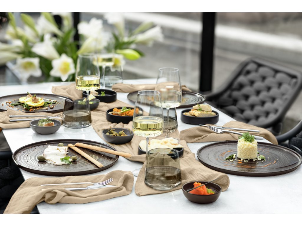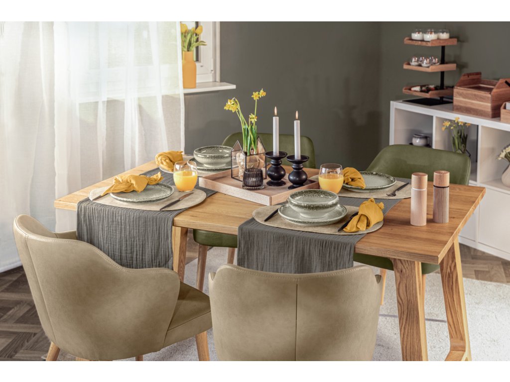 100 % bavlna. Hmotnosť približne 125 g/m². Moderný obrúsok z mäkkého mušelínu v balení po šiestich kusoch. Bavlnená tkanina sa vyznačuje predovšetkým mimoriadnou trvanlivosťou a odolnosťou. Obrúsok je navyše nežehlivý a ľahko sa udržiava. Zvráskavený vzhľad sa objaví už po prvom praní.Dodatočné parametre