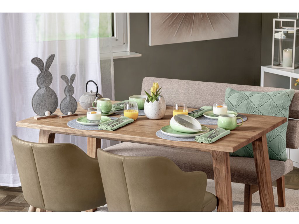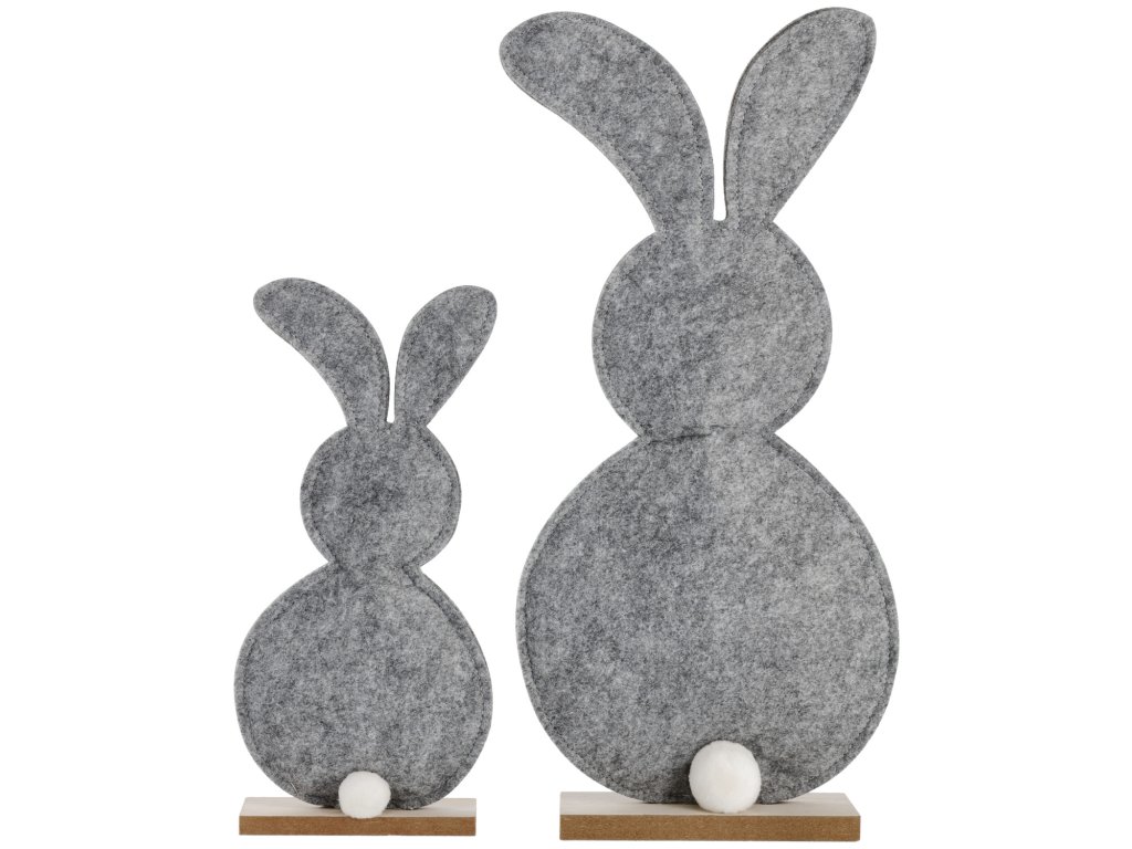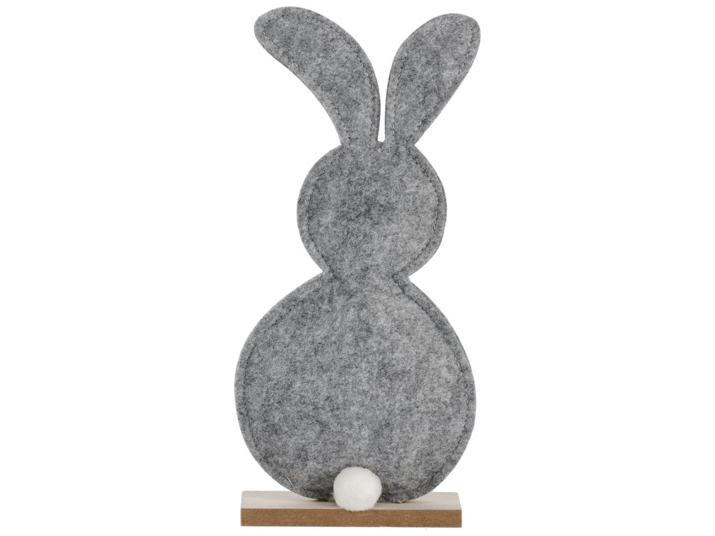Osterhase aus grauem Filz, mit Holzsockel.Dodatočné parametre