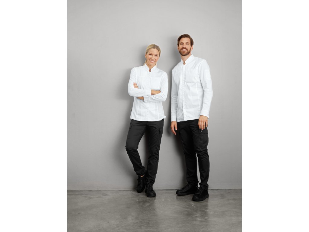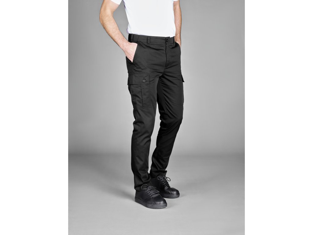 65 % bavlna, 35 % polyester. 150 g/m². Pranie na 60°. Športové pánske kuchárske nohavice z vysokokvalitnej, mimoriadne ľahkej zmesi bavlny a polyesteru. S dvoma veľkými cargo vreckami na nohaviciach a pohodlným elastickým pásom na zadnej strane. Majú tiež dve zadné vrecká so zapínaním na gombíky, bočné vrecká s rozparkom a pútka na opasok na páse. Pohodlný strih s mierne zúženou nohavicou. Vnútorná dĺžka nohavíc: 80 cm vo veľkosti 50Dodatočné parametre