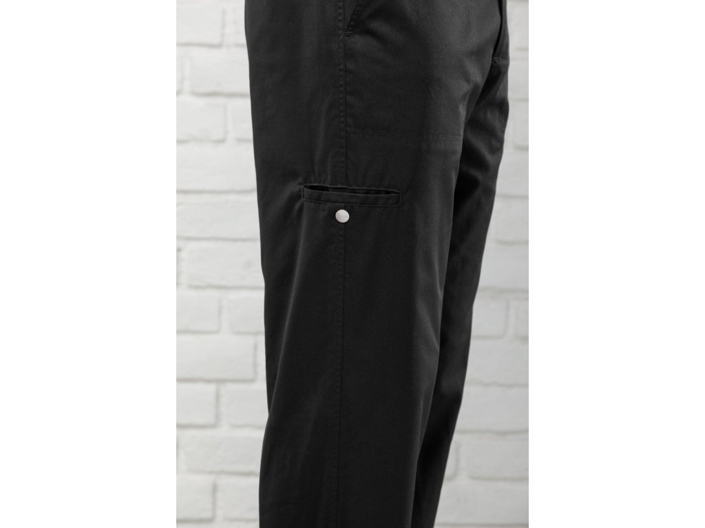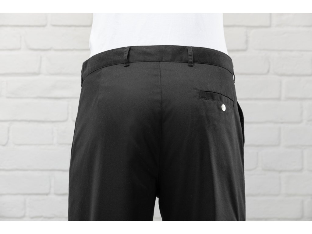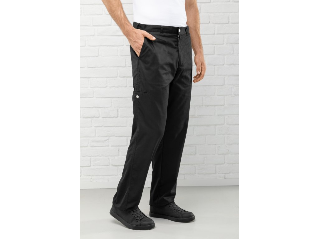 65 % polyester, 35 % bavlna. 245 g/m². Pranie na 60°. Jednoduché pánske kuchárske nohavice z ľahko udržiavateľného a odolného materiálu. So zadným vreckom vzadu, dvoma bočnými vreckami a vreckom so zapínaním na cvočky na pravej nohavici. Mimoriadne pohodlný strih s rovnými nohavicami a klasickým pásom s pútkami na opasok. Vnútorná dĺžka nohavíc: 80 cm vo veľkosti 50.Dodatočné parametre