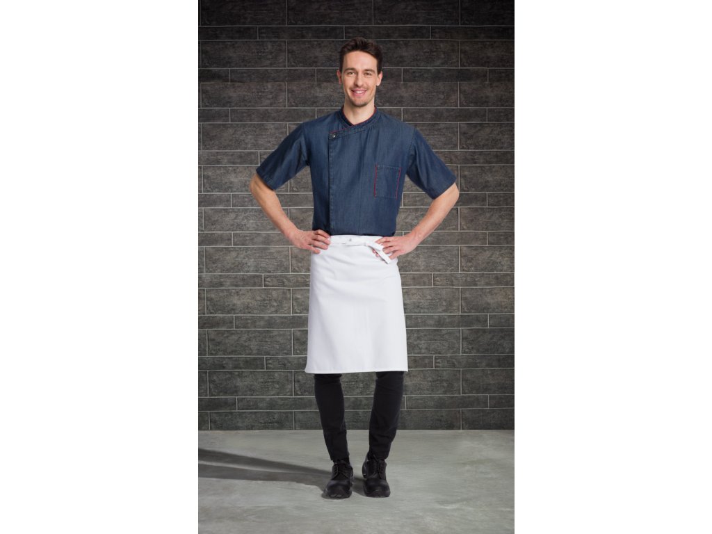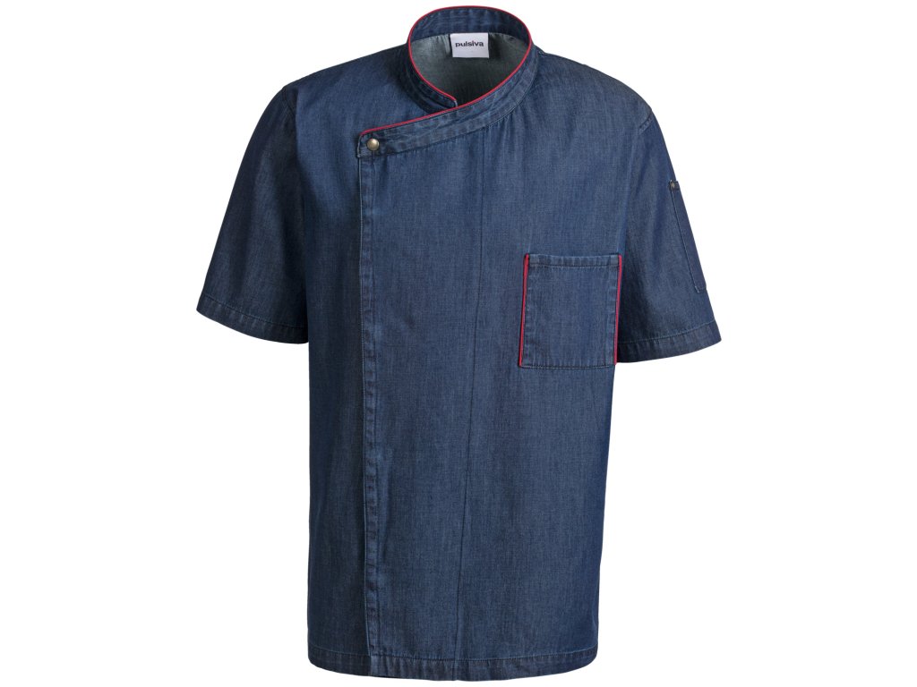 100 % bavlna. 190 g/m². Pranie na 40°. Džínsová kuchárska bunda s ľahkou údržbou, zapínaním na cvočky a vreckom na pero na ľavom ramene. Vrecko na pero a golier majú farebné lemovanie a pod pazuchami sú očká. K dispozícii s polovičnými rukávmi a dlhými rukávmi. Rovný strih. Dĺžka chrbta: 76 cm vo veľkosti 50Dodatočné parametre
