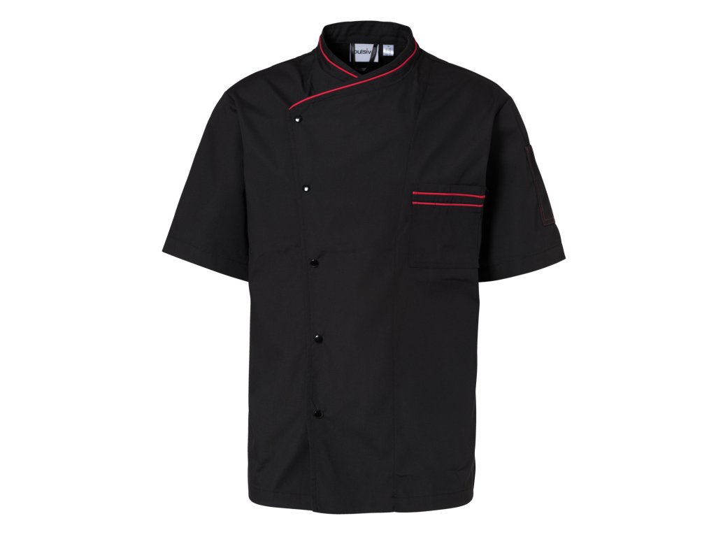 65 % polyester, 35 % bavlna.175 g/m². Pranie na 60°. Praktická pánska kuchárska bunda z ľahko udržiavateľnej, príjemnej zmesovej tkaniny. So zapínaním na cvočky, kontrastným lemovaním a očkami pod pazuchami. Ľavá predná časť s náprsným vreckom, v hornej časti ramena s vreckom na pero. Rovný strih dostupný s polovičnými rukávmi a dlhými rukávmi. Dĺžka chrbta: 75 cm vo veľkosti 50Dodatočné parametre