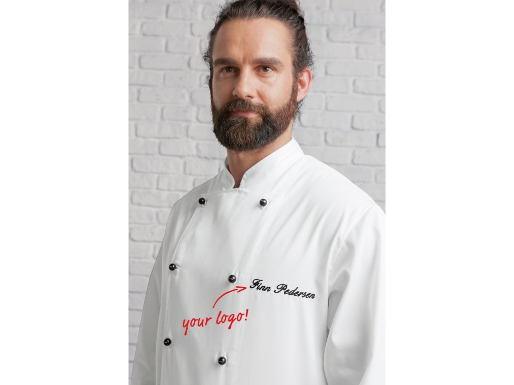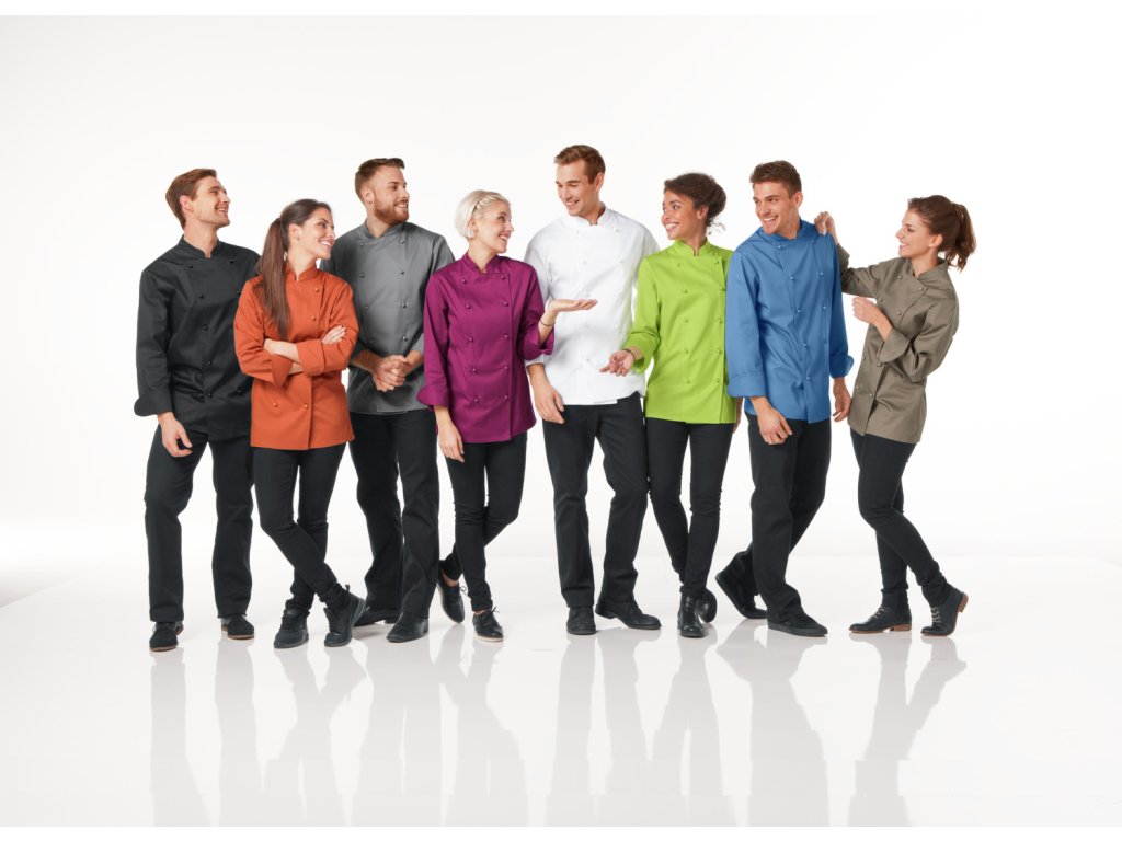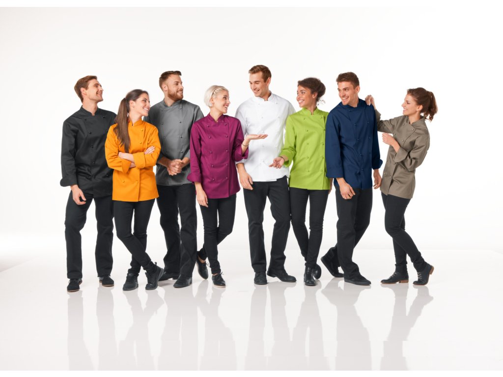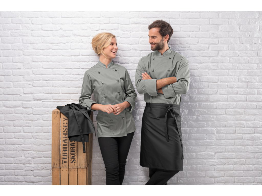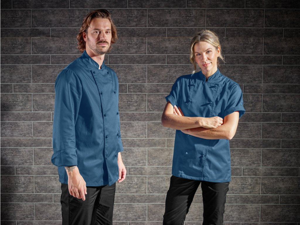 65 % polyester, 35 % bavlna. 200 g/m². Pranie na 60°. Klasická, robustná pánska kuchárska bunda z odolnej a pohodlnej zmesovej kvality s dlhými rukávmi. S dvojradovým zapínaním na 5 gombíkov. Kuchárske sako je k dispozícii aj s polovičnými rukávmi. Rovný strih s maximálnym pohodlím. Dodáva sa s gombíkovou légou a farebne zladenými guľôčkovými gombíkmi. Dĺžka chrbta: 79 cm vo veľkosti 50Dodatočné parametre