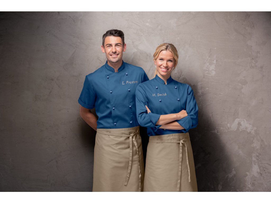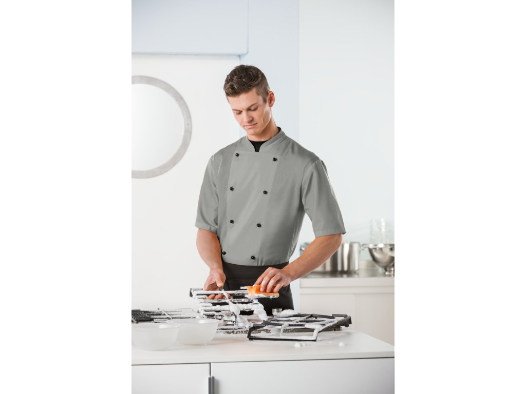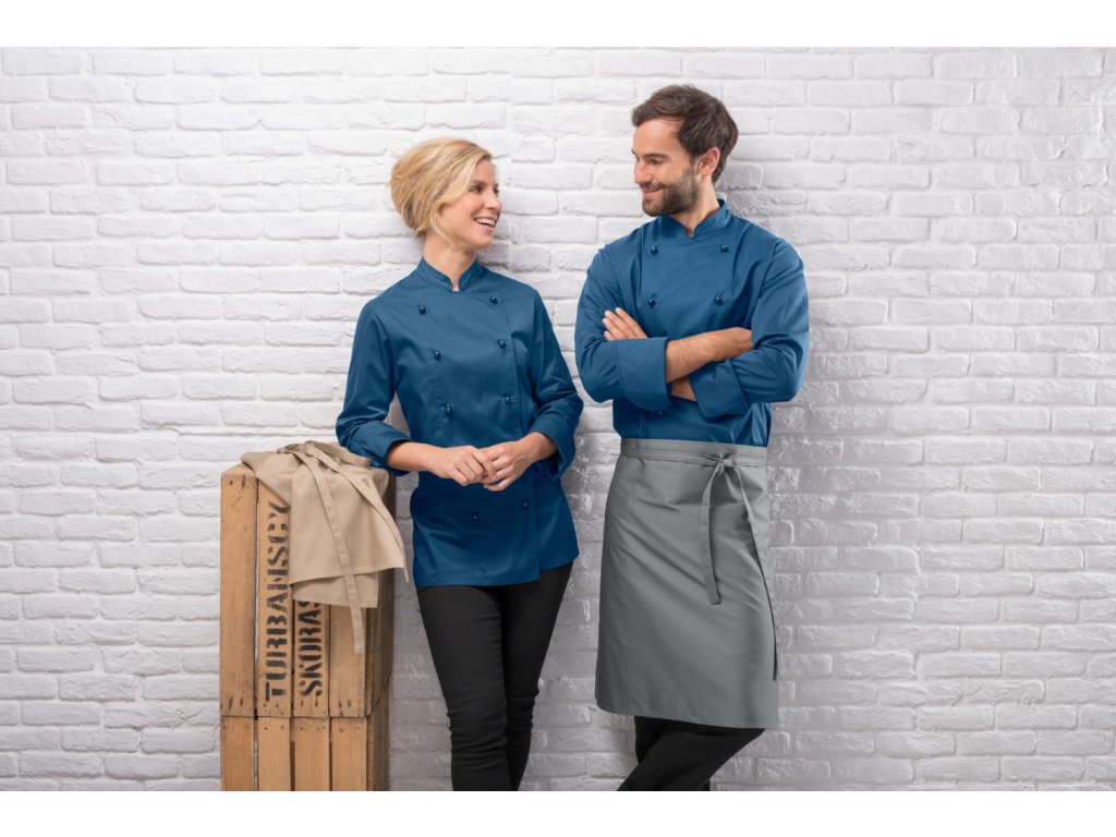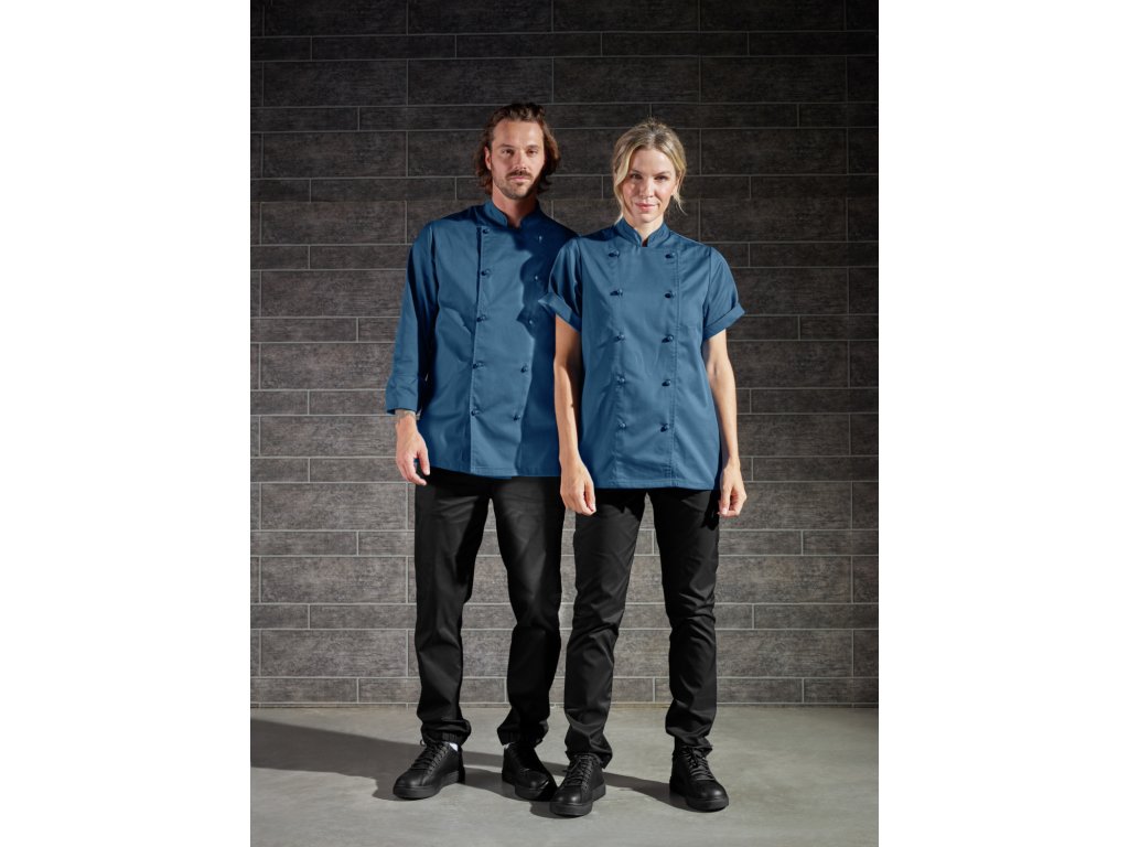 65 % polyester, 35 % bavlna. 200 g/m². Pranie na 60°. Klasická, robustná pánska kuchárska bunda z odolnej a pohodlnej zmesovej kvality s polovičným rukávom. S dvojradovým zapínaním na 5 gombíkov. Kuchárske sako je k dispozícii aj s dlhým rukávom. Rovný strih s maximálnym komfortom. Dodáva sa s gombíkovou légou a farebne zladenými guľôčkovými gombíkmi. Dĺžka chrbta: 79 cm vo veľkosti 50Dodatočné parametre