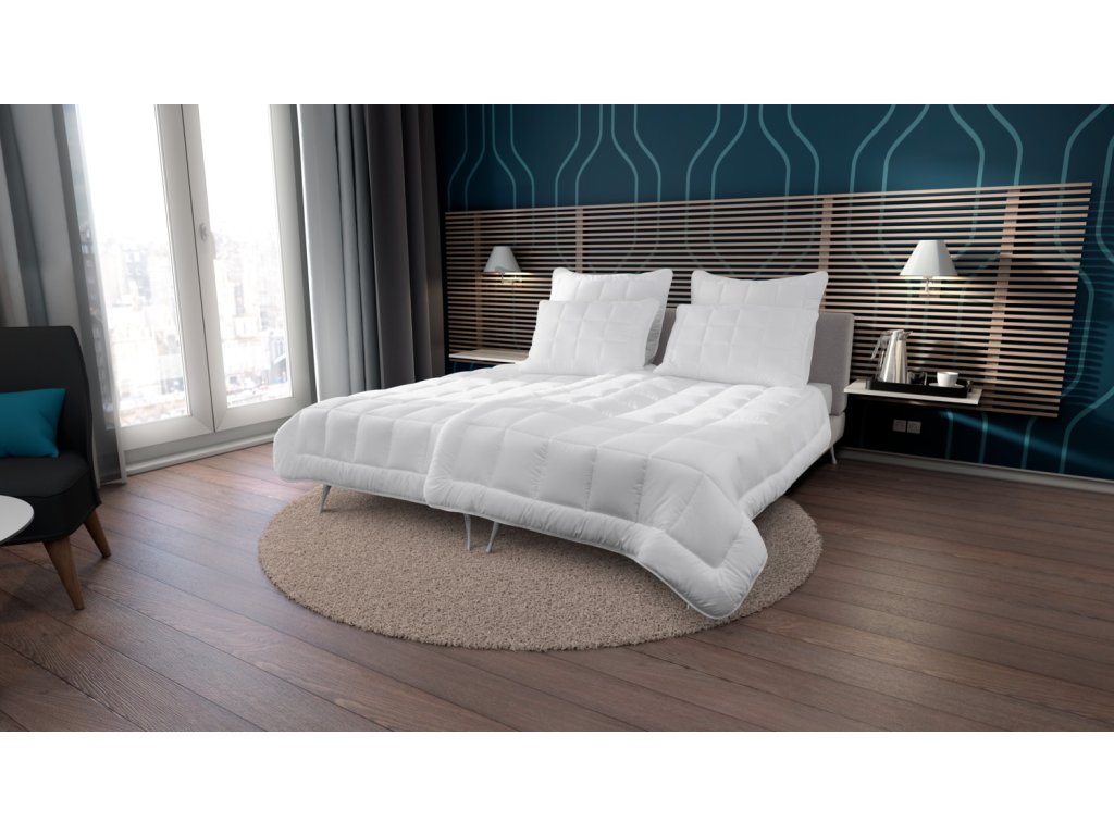 Výplň: 100 % polyesterové duté vlákno. Poťah: 100 % polyester. Jednolôžková prikrývka s dobrým pomerom ceny a kvality. Supersilikonizované duté vlákno. Dobrý transport vlhkosti. Vhodná pre alergikov. Jednoduchá údržba, možno prať v práčke. Jednoduché šachovnicové prešívanie, žiadne kĺzanie výplne. K dispozícii v celoročnej a letnej kvalite. Prešla skúškou žíhania cigariet v súlade s normou EN ISO 12952-1. Vlákno potiahnuté silikónom chráni prikrývku pred zhlukovaním. Pri použití chlóru sa silikón rozpustí a vlákna v prikrývke sa zlepia.Dodatočné parametre