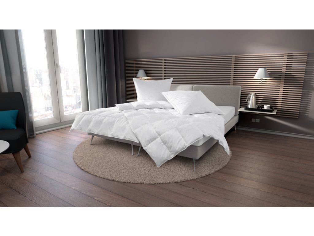 Výplň: 90 % nové biele kačacie páperie, 10 % nové biele perie, trieda 1. Poťah: 100 % bavlna (jemné telo so saténovým lemovaním). Paplón ponúka veľký komfort ležania. Šetrný k pokožke. Jednoduchá údržba, nekomplikované čistenie. K dispozícii v letnej alebo celoročnej kvalite. Tesnenie Downpass. Páperie Nomite a vlákno odolné voči roztočom. Prešiel testom žíhania cigariet podľa normy DIN EN ISO 12952-1.Dodatočné parametre