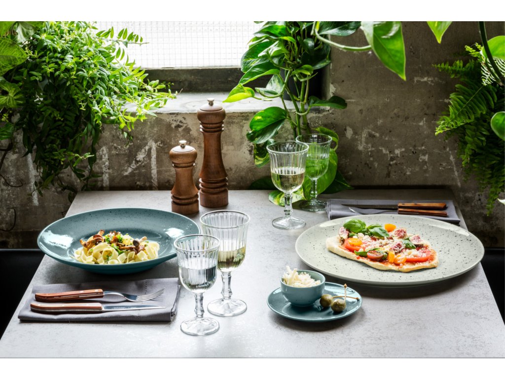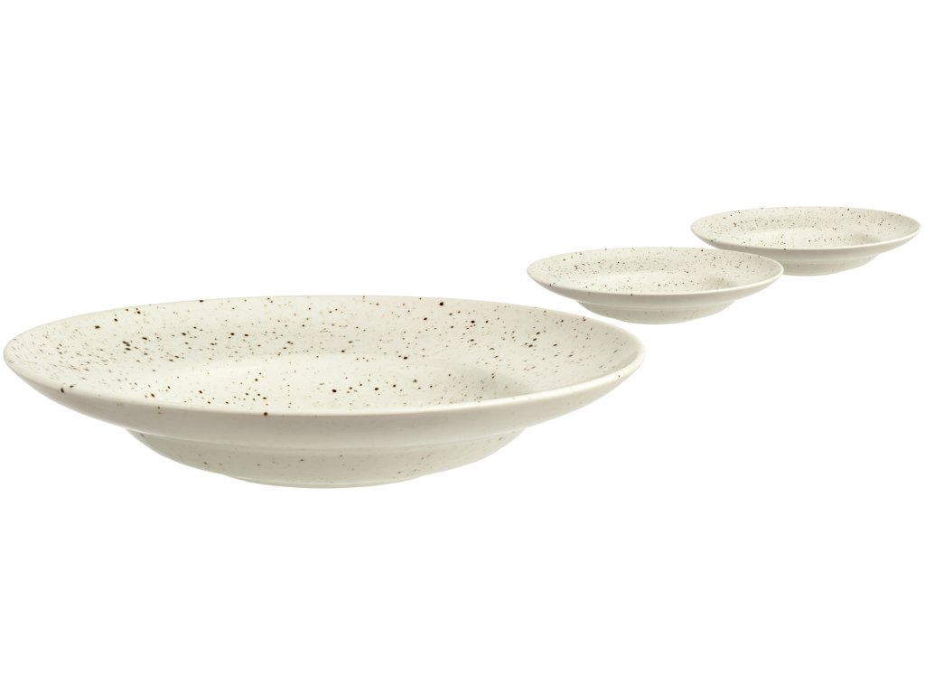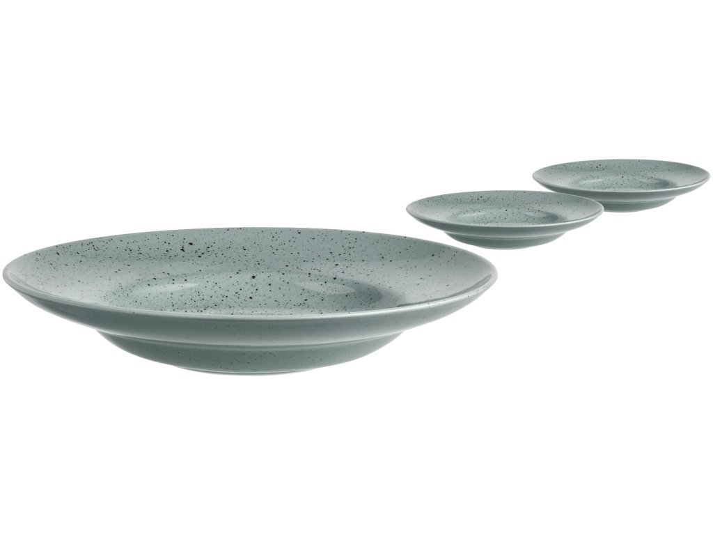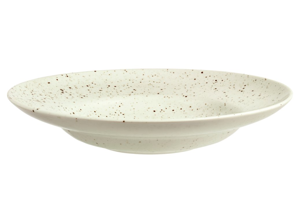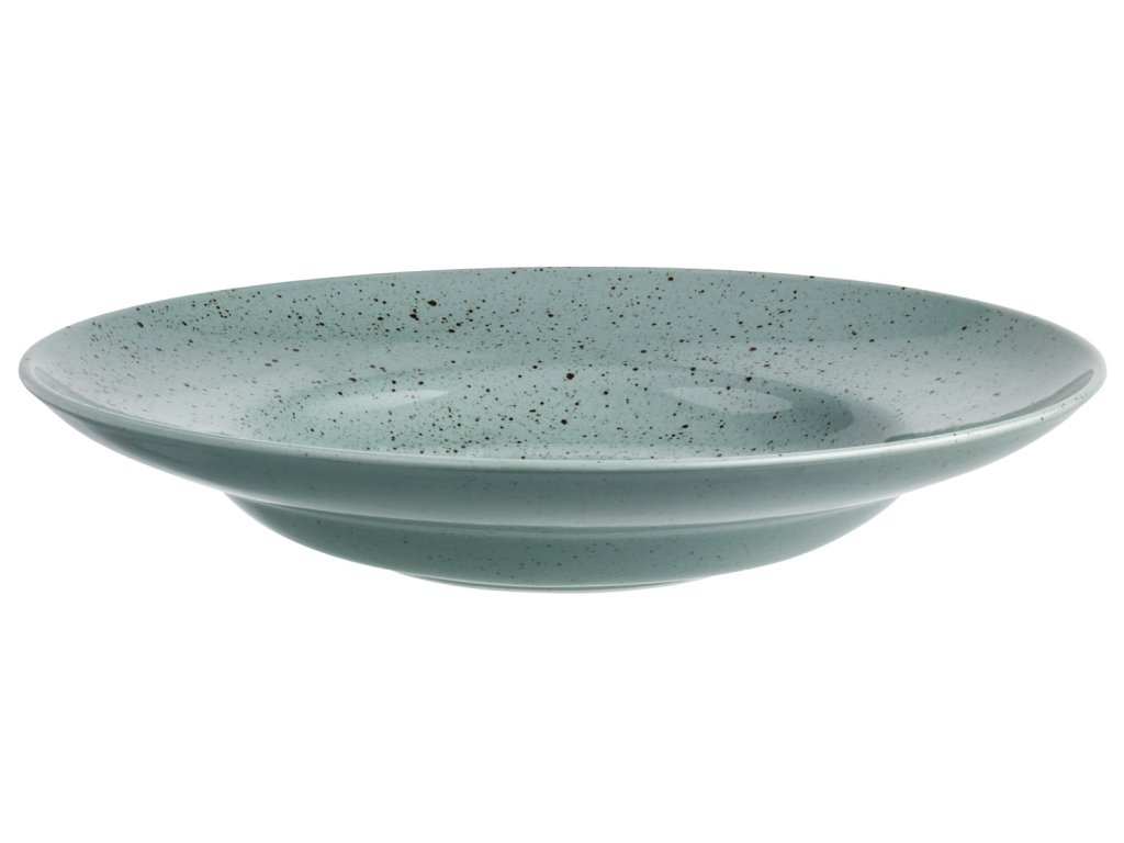 Farebný tanier na cestoviny so širokým okrajom z porcelánu s nepravidelným prskaním. Vhodný do umývačky riadu a mikrovlnnej rúry.Dodatočné parametre