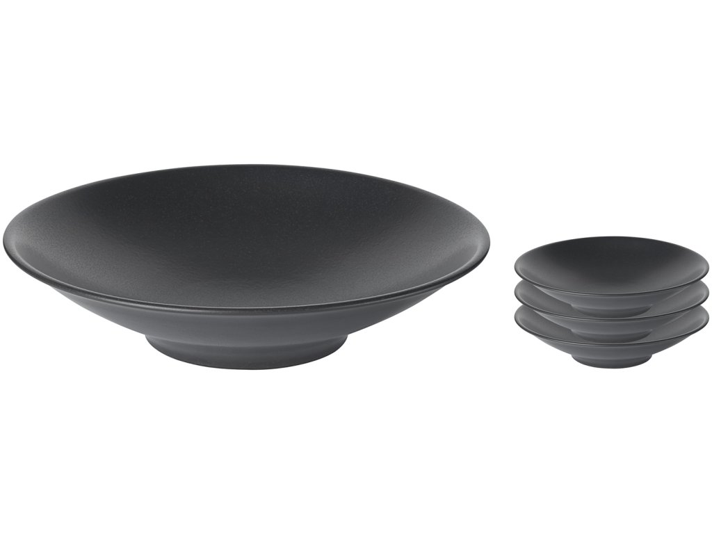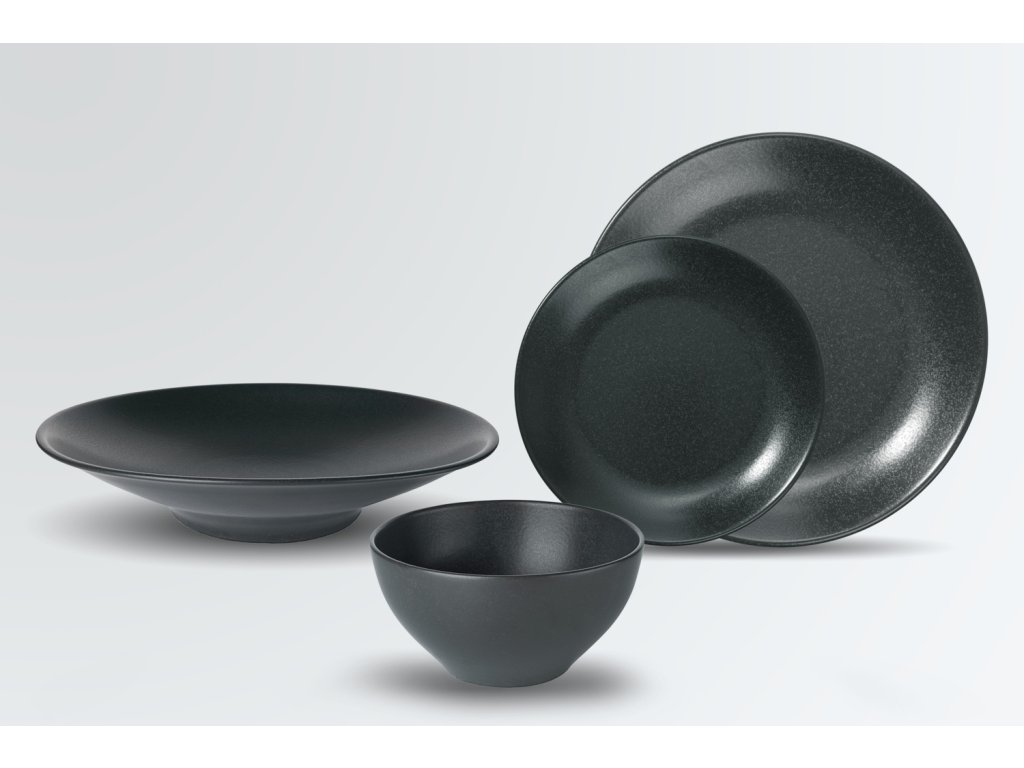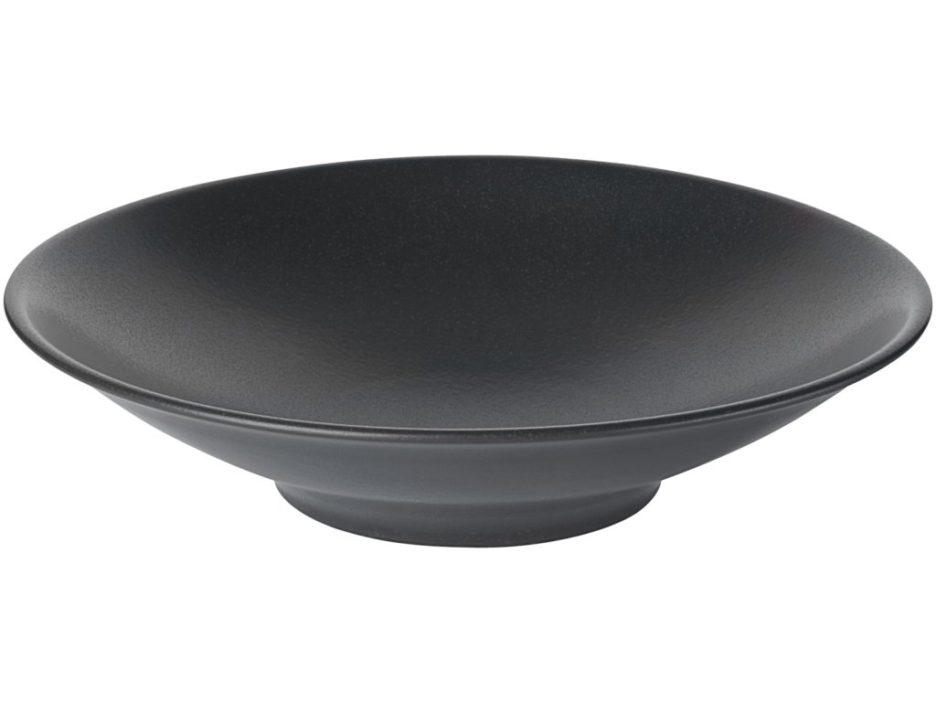 Trendy tanier na cestoviny z porcelánu s matnou čiernou glazúrou v keramickom vzhľade. Bez okraja. Vhodný do umývačky riadu a mikrovlnnej rúry.Dodatočné parametre