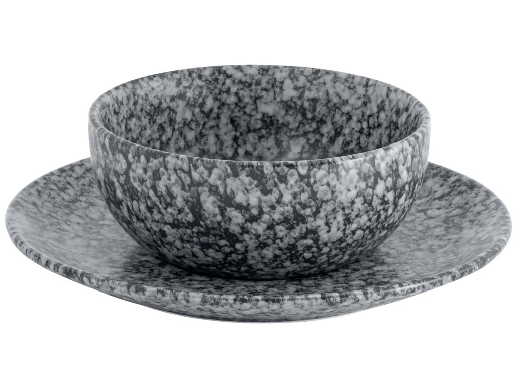 Farebná podšálka z kameniny. Vzhľad prírodného kameňa. Hodí sa pod misku s rozmermi 15,5 × 6,5 cm. Vhodná do umývačky riadu a mikrovlnnej rúry.Dodatočné parametre