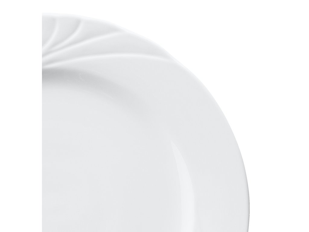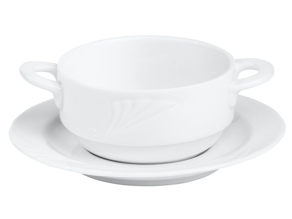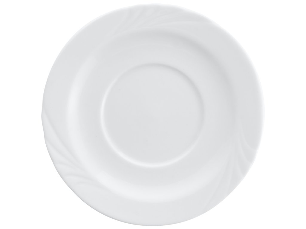 Biela porcelánová podšálka na polievku s jednoduchým reliéfom. Vhodná do umývačky riadu a mikrovlnnej rúry.Dodatočné parametre