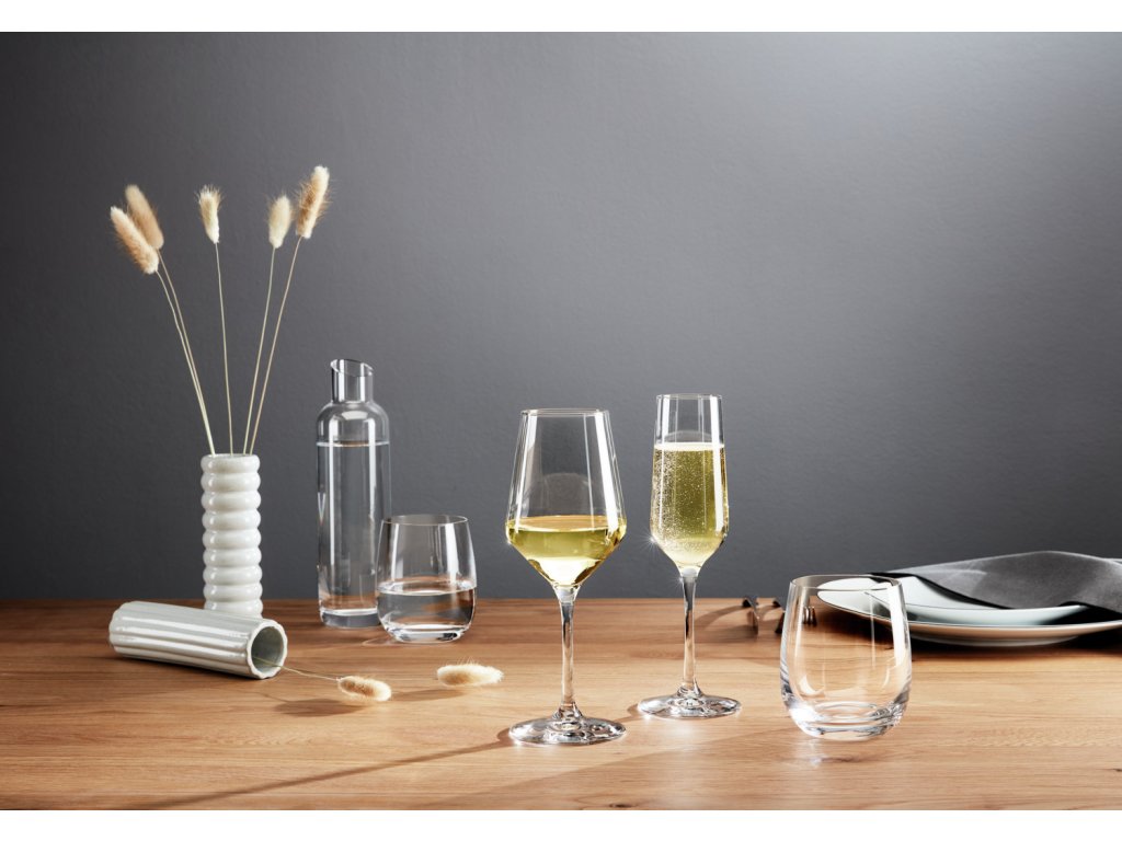 Pohár na ružové víno z krištáľového skla v elegantnom dizajne. Vhodný do umývačky riadu. Päťročná záruka na opätovné dokúpenie.Dodatočné parametre