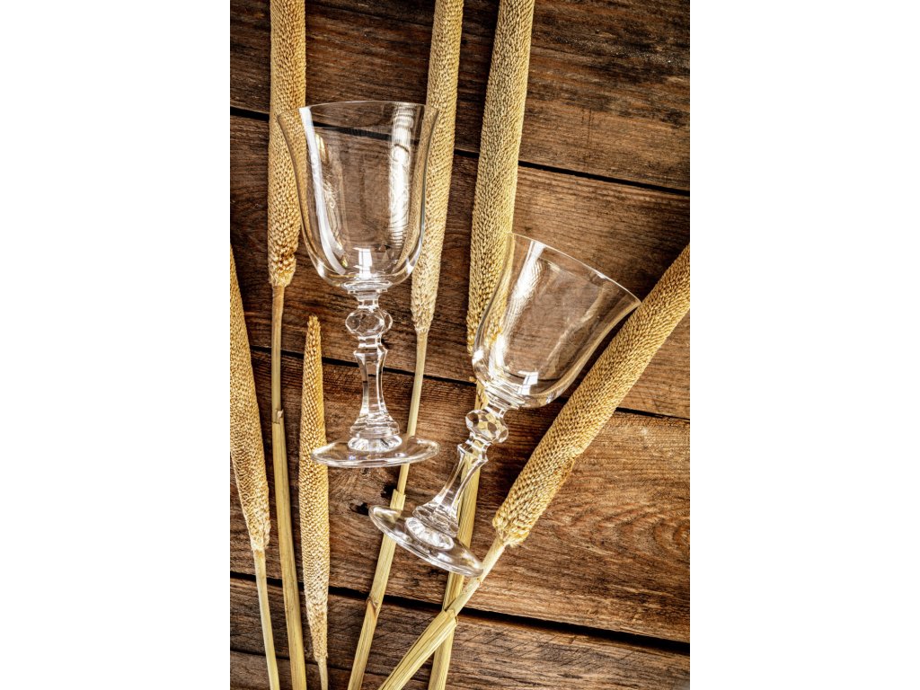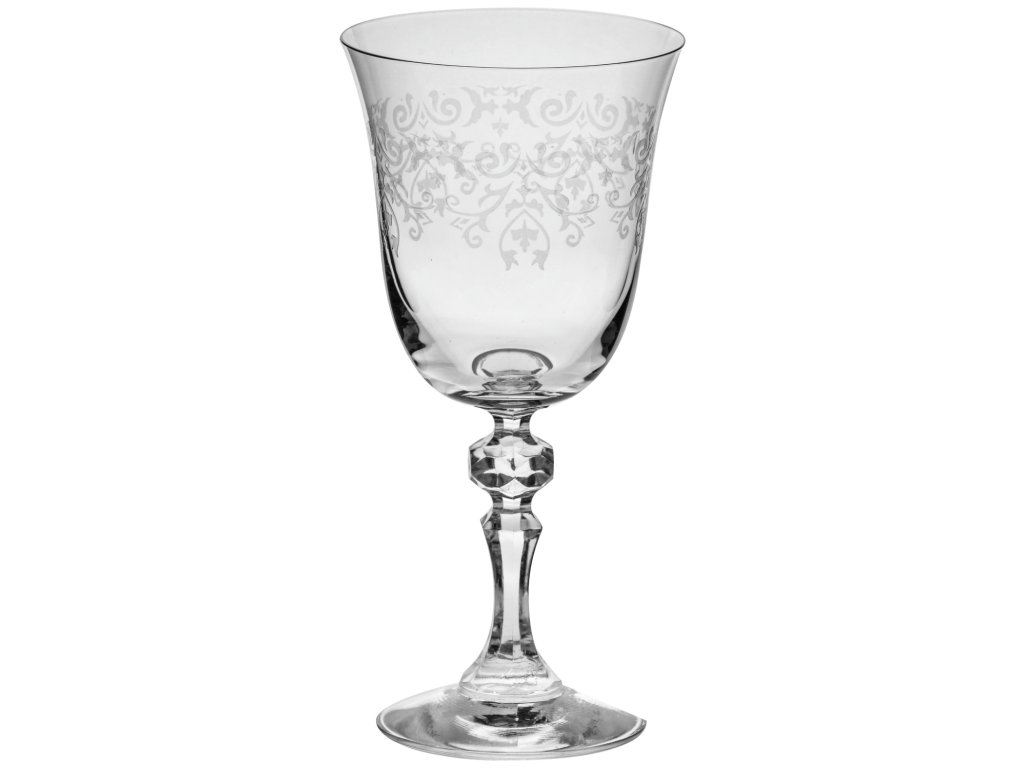 Pohár na červené víno v tvare tulipánu so stopkou v tvare diamantu a filigránovým dekorom. Krištáľové sklo. Vhodné do umývačky riadu.Dodatočné parametre