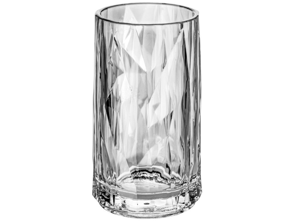 Pohár Superglas je vyrobený z nerozbitného high-tech plastového materiálu s atraktívnym fazetovým dizajnom. Spĺňa zákonné požiadavky pre všetky oblasti, kde je sklo zakázané. Izoluje štyrikrát lepšie ako bežné sklo. Odolné voči nárazom, recyklovateľné, vhodné do mikrovlnnej rúry, vhodné do umývačky riadu do max. 70 °C, nové poháre prvýkrát opláchnite pri teplote nad 80 °C, pH neutrálny umývací prostriedok a špeciálny oplachovací prostriedok odporúčaný pre plastové poháre.Dodatočné parametre